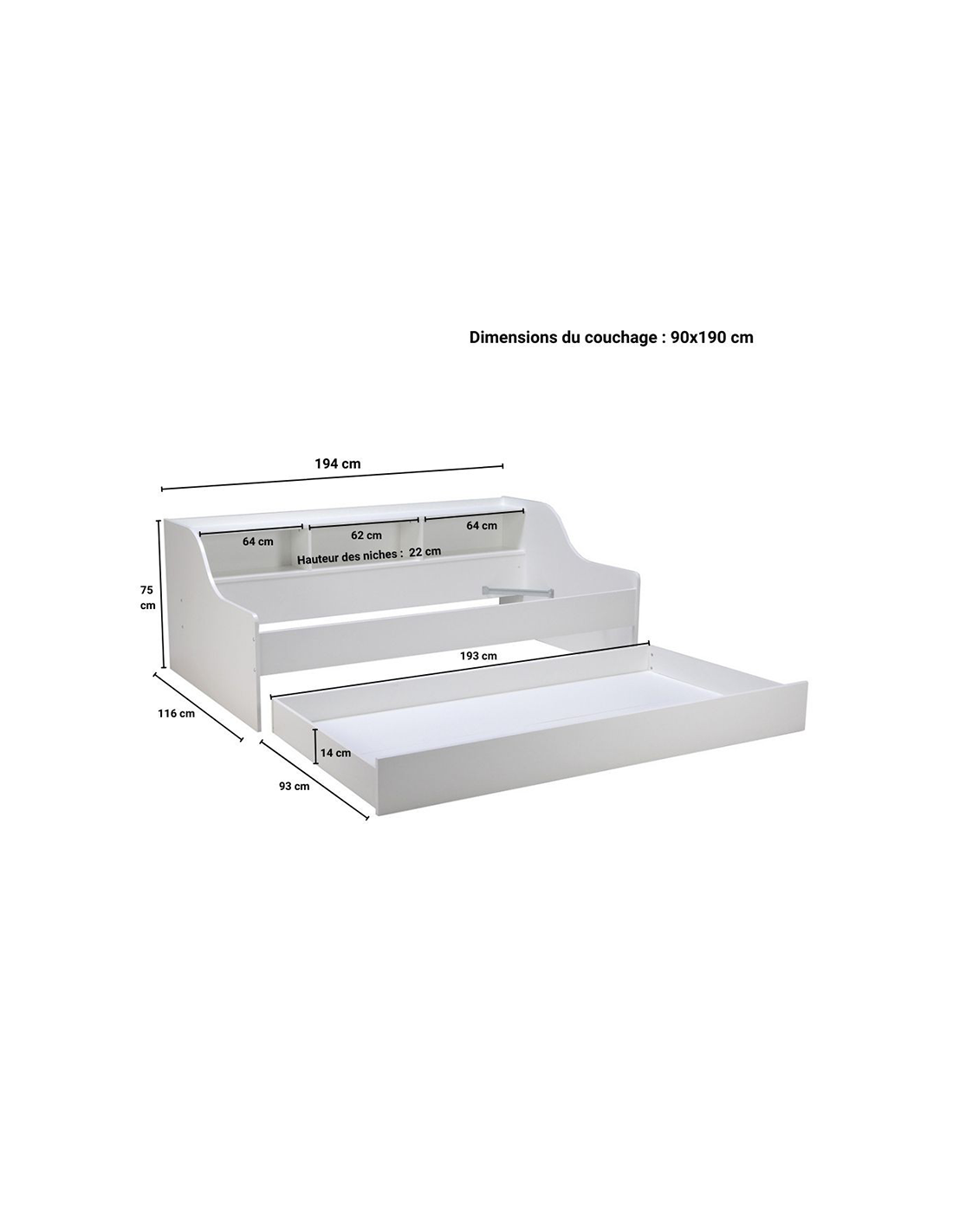 Caractéristiques sur le Lit enfant avec rangements Galaxie Des Rêves 90x190 Blanc - Laïba Kids :