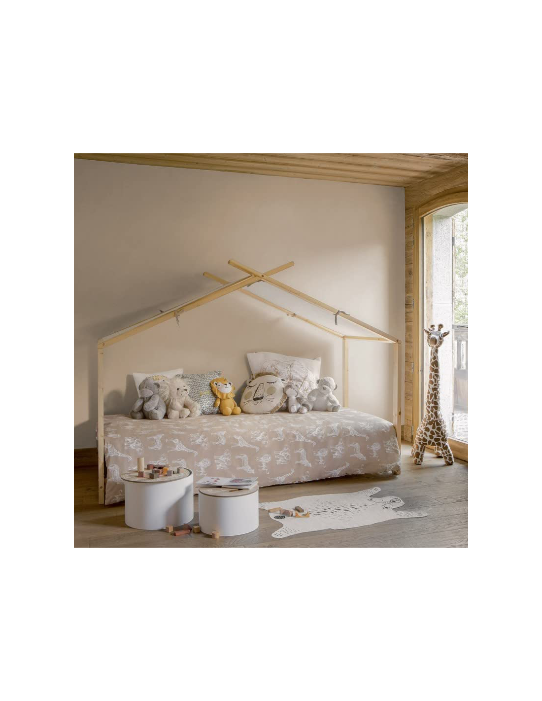Ce lit est parfait pour une chambre d'enfant. Le lit est fabriqué en lattes de bois, en bois de pin et en contreplaqué. Notre lit en bois pour enfants a un design moderne et attire donc tous les regards dans la chambre des enfants. Ce design intemporel permet de l'assortir facilement au reste de notre mobilier. Un lit d'enfant au design ludique, parfait pour une chambre d'enfant.