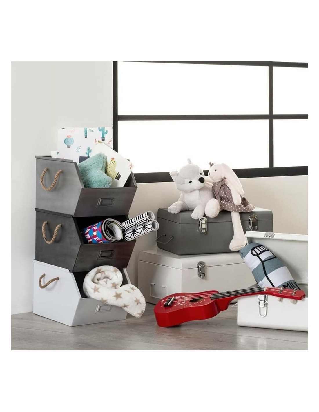 Apportez une solution de rangement élégante et pratique avec le Lot de 2 Cantines en Métal Blanc d'Atmosphera for Kids. Ces cantines, avec leur finition blanche épurée et leur design résolument moderne, sont parfaites pour ajouter une touche de sophistication tout en offrant une fonctionnalité inégalée dans les chambres d'enfants. Le blanc pur de ces cantines apporte une luminosité et une sensation d'ouverture à n'importe quel espace, se mariant parfaitement avec toute palette de couleurs ou style de décoration. Réalisées en métal solide, ces cantines offrent une durabilité exceptionnelle, résistant aux chocs et à l'usure quotidienne, assurant ainsi une longue durée de vie même dans les environnements les plus animés. Qu'il s'agisse de jouets, de livres, de vêtements ou de fournitures scolaires, ces cantines spacieuses aident à maintenir l'ordre et la propreté, tout en restant facilement accessibles pour les enfants. En choisissant ces cantines, vous optez pour une solution de rangement qui ne compromet ni le style ni la fonctionnalité. Elles encouragent les enfants à organiser leurs espaces de manière autonome, tout en ajoutant un élément décoratif chic à leur chambre.