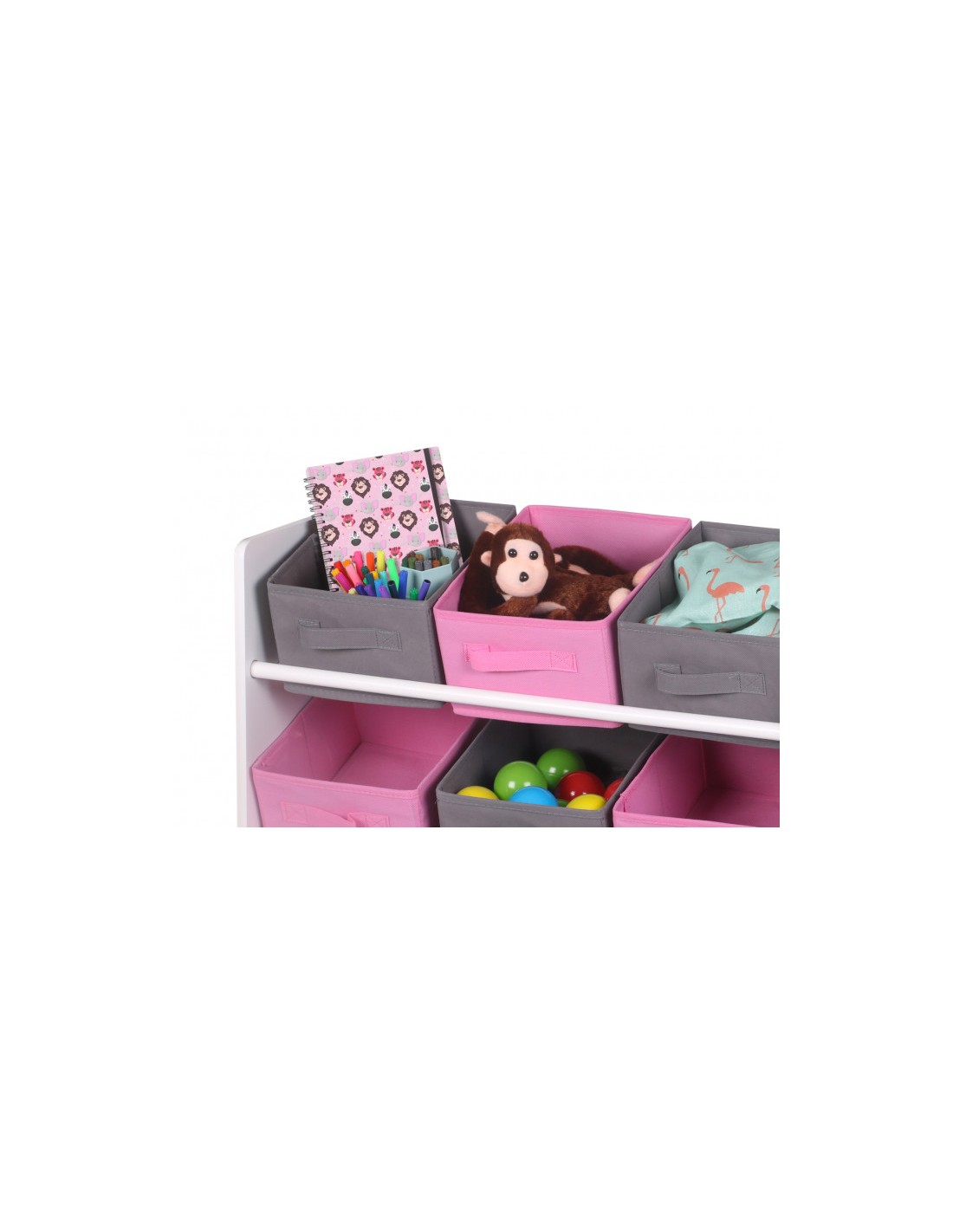 Caractéristiques sur le Meuble de rangement avec 9 paniers Roses et Gris Atmosphera For Kids :