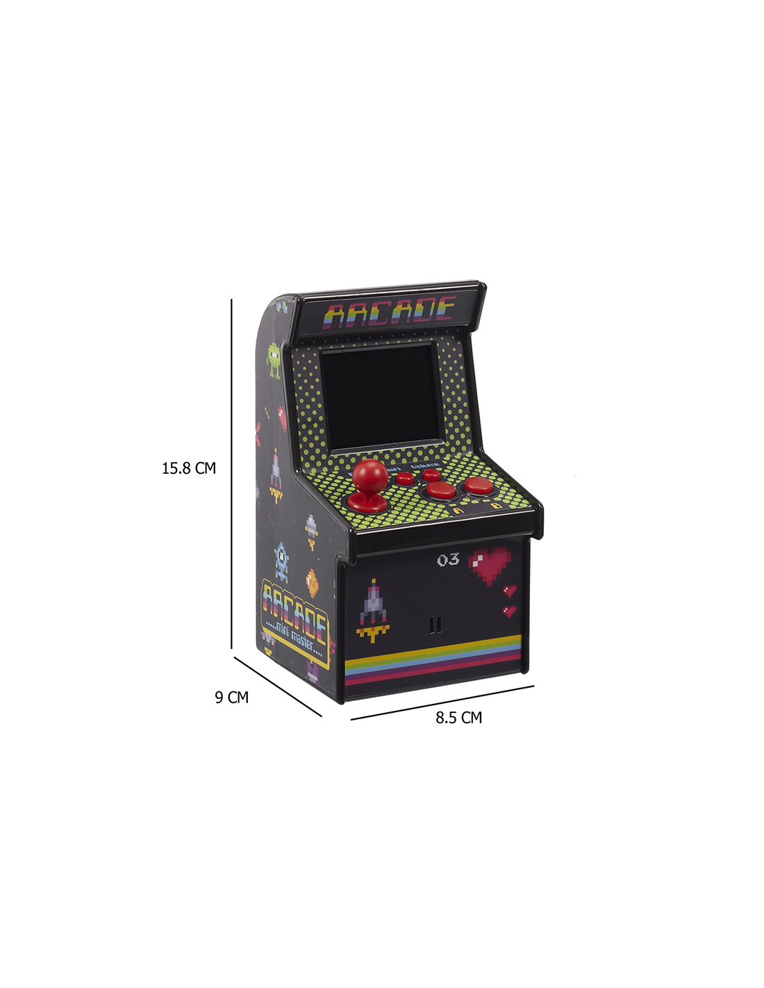 Caractéristiques sur la Mini Borne Arcade 240 Jeux Classiques Mister Gadget :