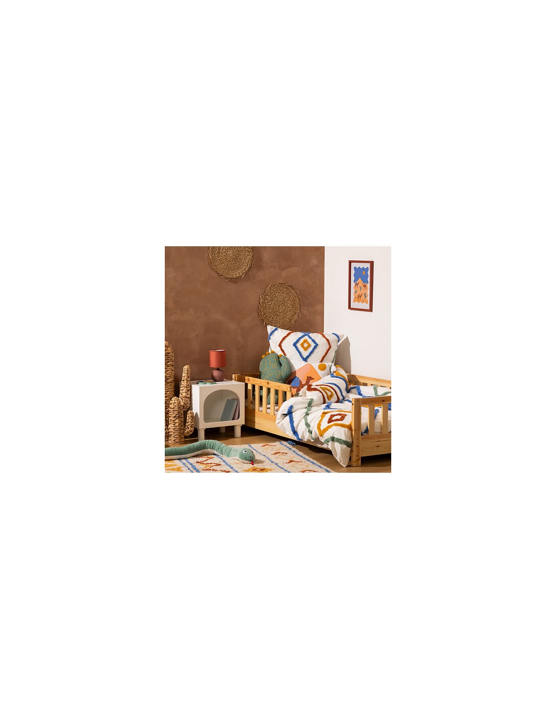 Offrez à votre enfant une escapade magique au cœur de l’Orient avec la parure de lit Marrakech signée Atmosphera For Kids. Entre motifs inspirés de l’art marocain et matières douces, chaque nuit devient une aventure sensorielle pleine de confort et de rêves colorés. Avec ses motifs géométriques inspirés de l’univers marocain, cette parure apporte une touche bohème et chaleureuse à la chambre, tout en stimulant l’imaginaire des petits globe-trotteurs. Confectionnée en coton doux et respirant, elle respecte la peau délicate des enfants et garantit un sommeil tout en douceur. Avec son format 140x200 cm et sa taie d’oreiller assortie (63x63 cm), cette parure s’adapte parfaitement aux lits une place et offre un habillage harmonieux du lit. En plus d’être confortable, elle est un véritable atout déco qui transforme l’ambiance de la chambre en un clin d’œil. Facile à entretenir, elle passe en machine et garde sa douceur et ses couleurs lavage après lavage.
