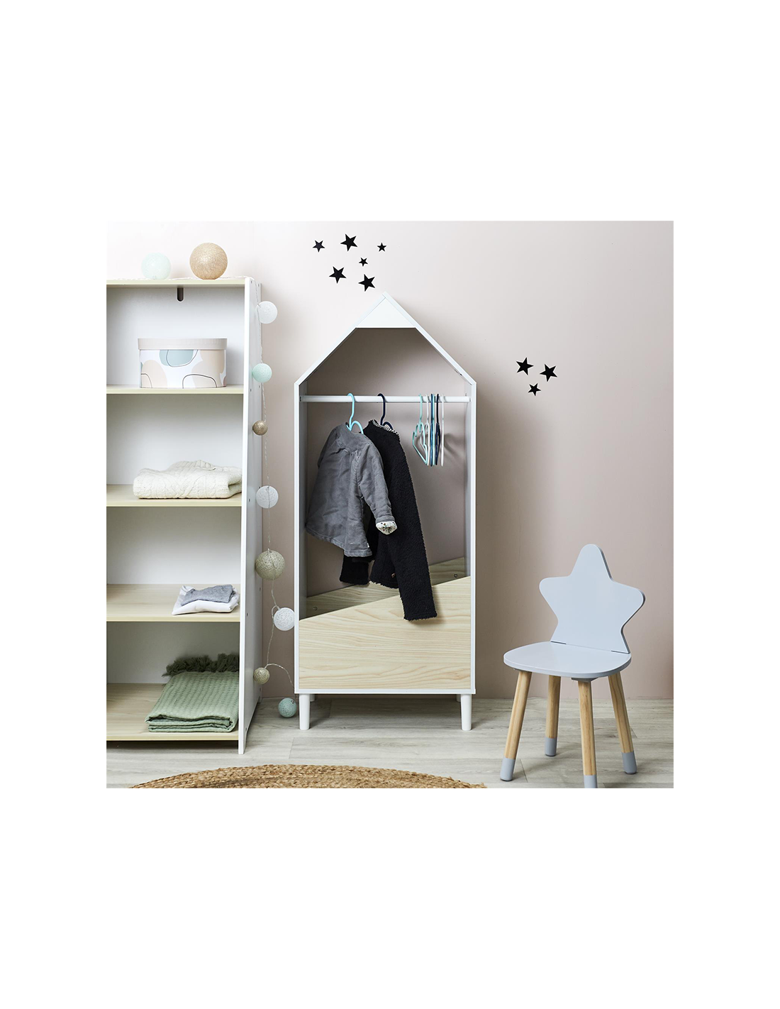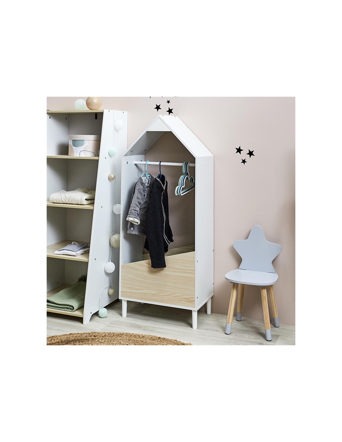 Créez une atmosphère chaleureuse et confortable dans la chambre de vos enfants avec cette armoire de style scandinave. La couleur blanche constitue une toile de fond parfaite pour tout type de motif. Avec son style scandinave, elle peut être placée dans n'importe quelle pièce de votre maison - la chambre à coucher ou la salle de jeux. comprend une tringle de suspension et une étagère.