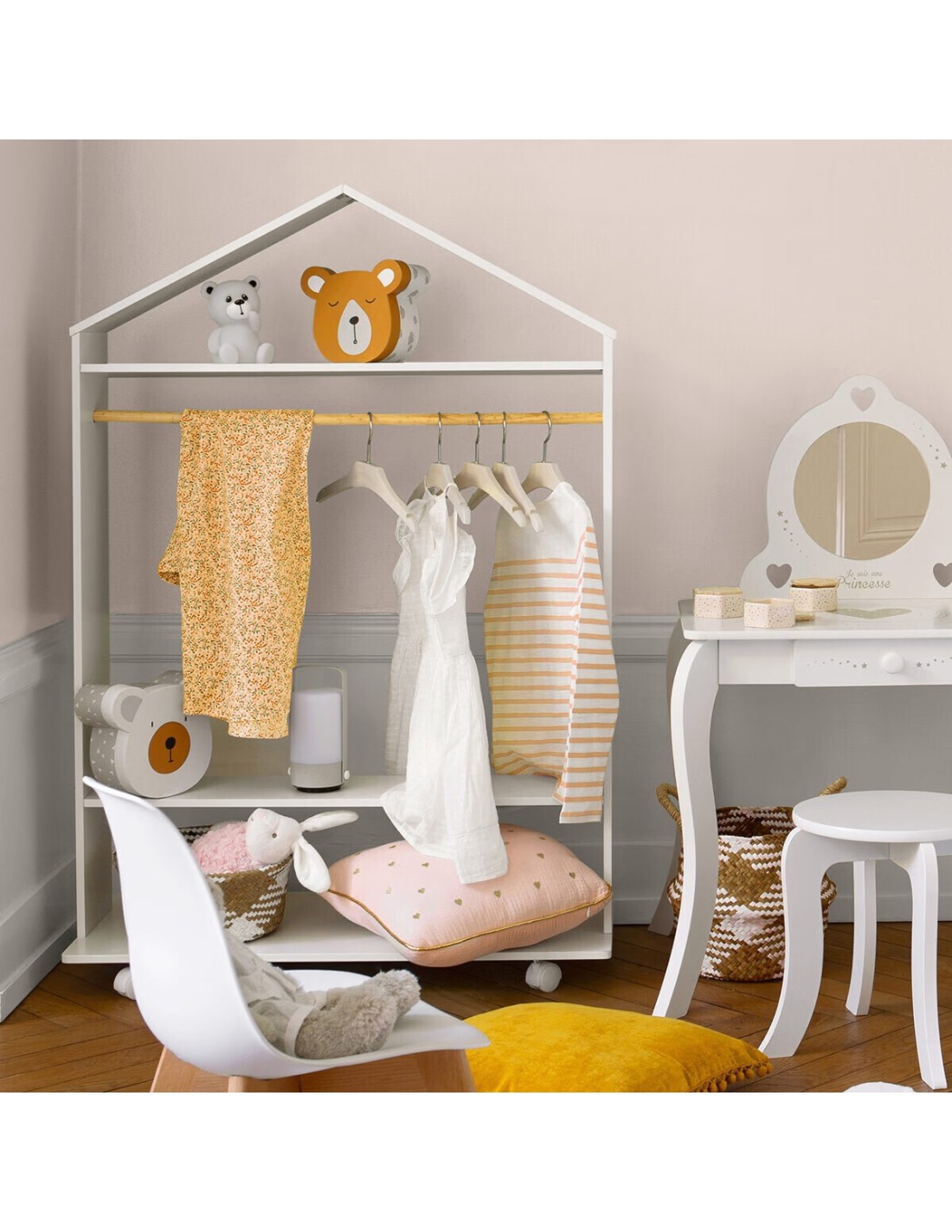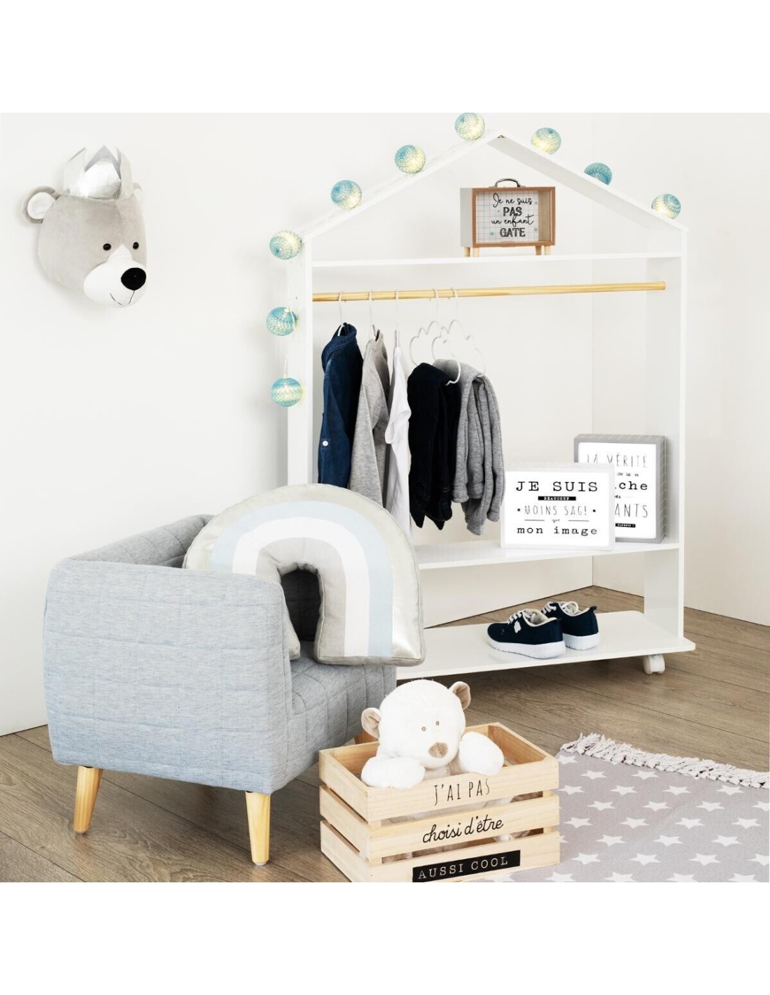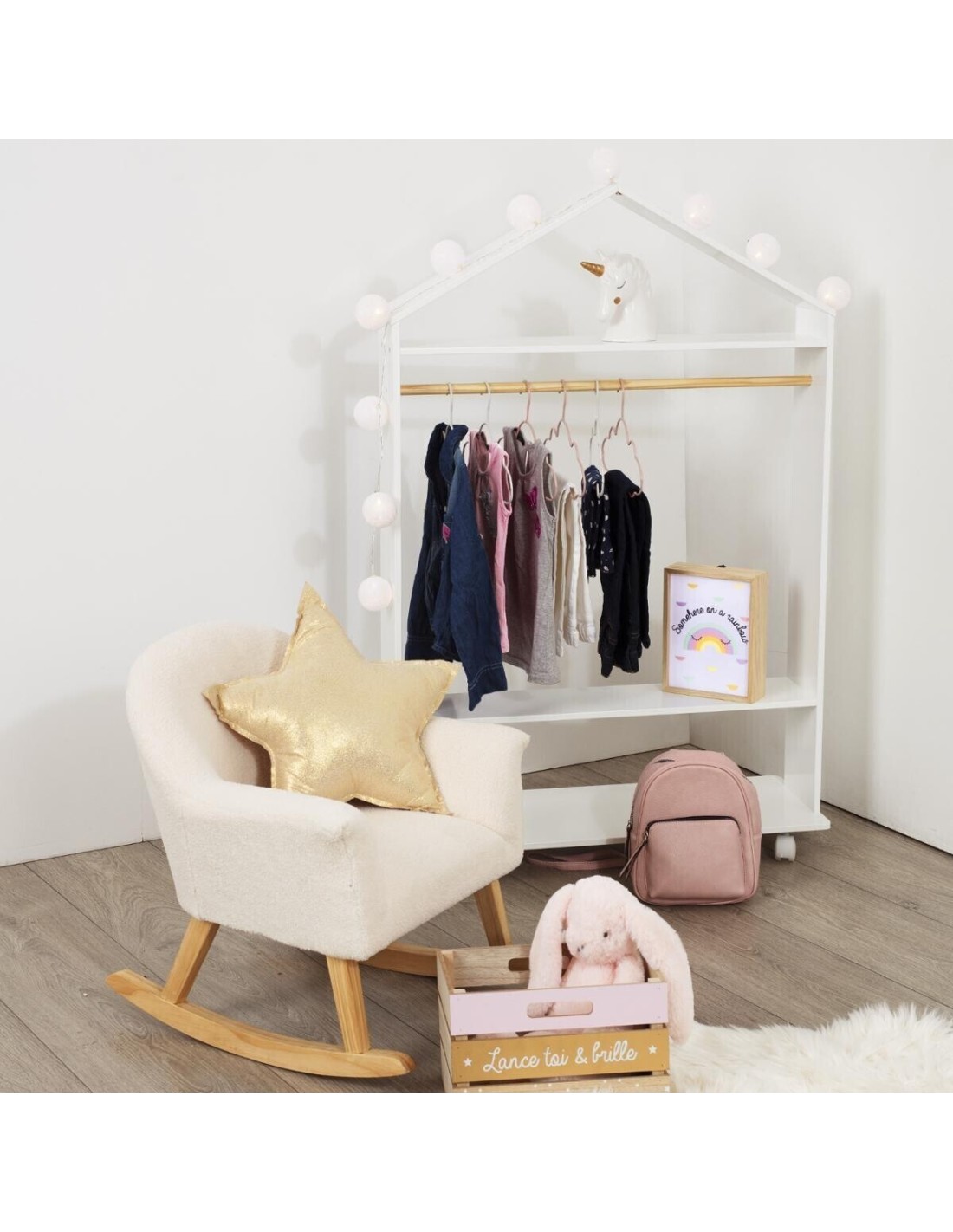 Organisez la chambre de votre enfant avec style et praticité grâce à la Penderie Pour Enfant À Roulettes Blanc de Atmosphera For Kids. Conçue pour allier fonctionnalité et design attrayant, cette penderie est le choix parfait pour créer un espace de rangement élégant et accessible. La finition blanche ajoute une touche de fraîcheur et de modernité à la chambre de votre enfant, s'harmonisant facilement avec n'importe quel décor. Avec ses lignes simples et son design minimaliste, cette penderie apporte une note de sophistication et de simplicité à l’espace. Équipée de roulettes robustes, cette penderie se déplace facilement, permettant de réorganiser la chambre sans effort ou de faciliter le nettoyage. La hauteur idéale de la penderie permet aux enfants d'accéder facilement à leurs vêtements, encourageant ainsi l'autonomie et l'organisation.