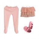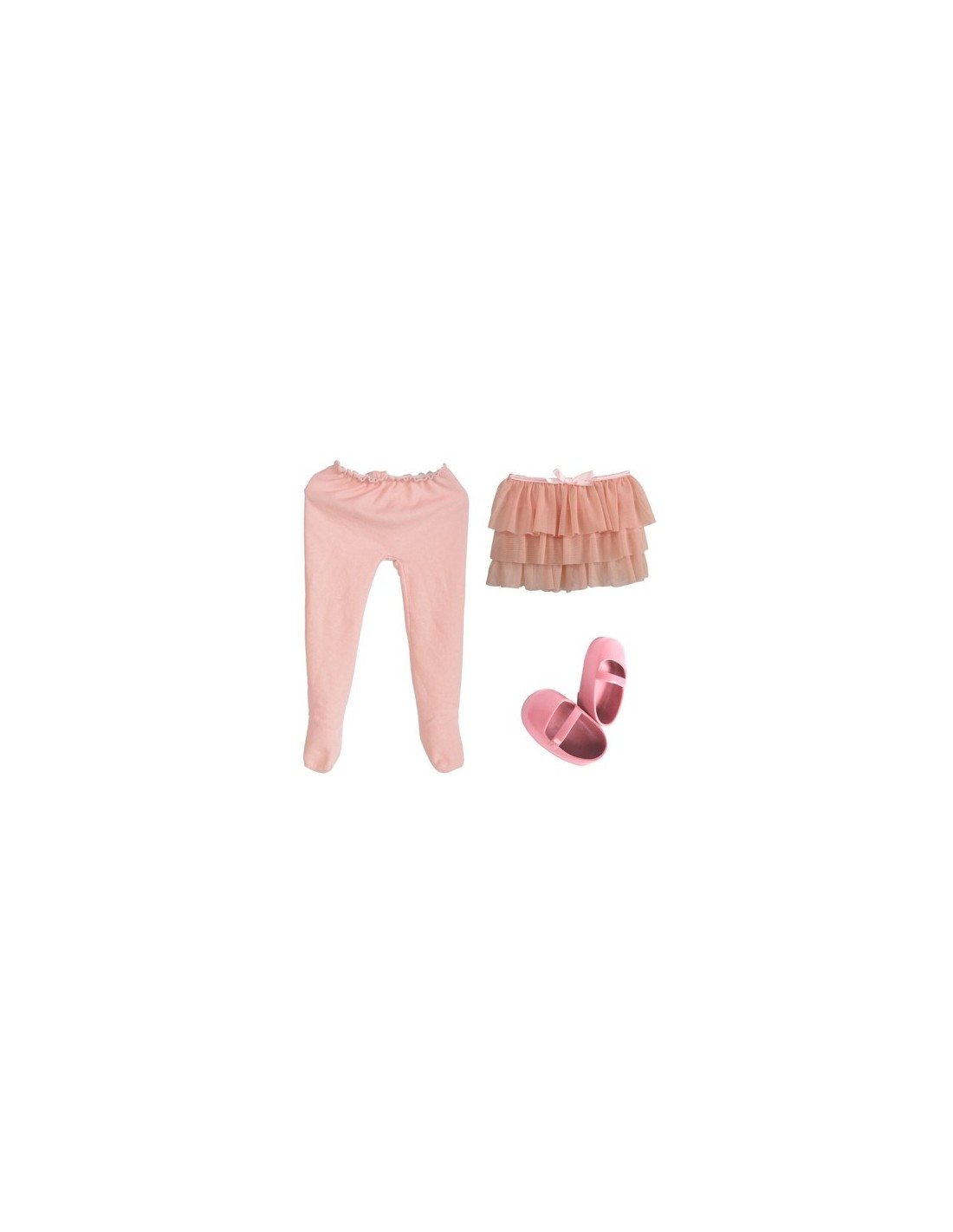 Ayla est habillée d'une classique, avec une une jupe rose en tulle, un débardeur, un gilet gris et une paire de ballerines roses.