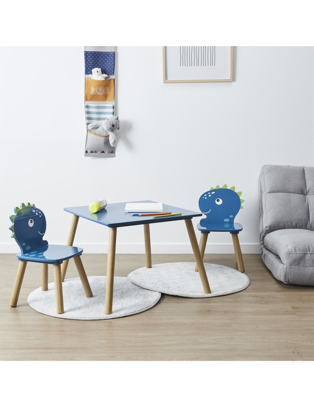 Caractéristiques sur la Table et 2 chaises Dino Bleu - Home Deco Kids :