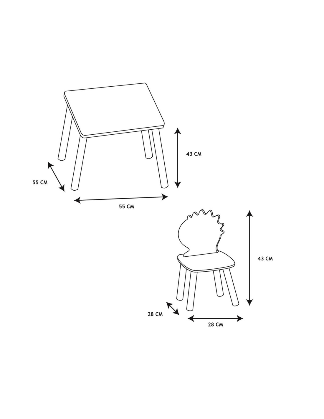 | Dimensions de la table : | L. 55 x P. 55 x H. 43 cm |
