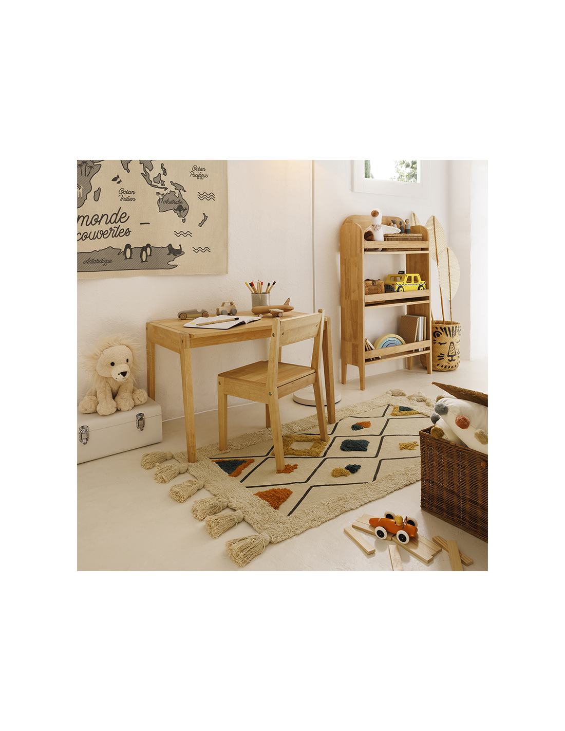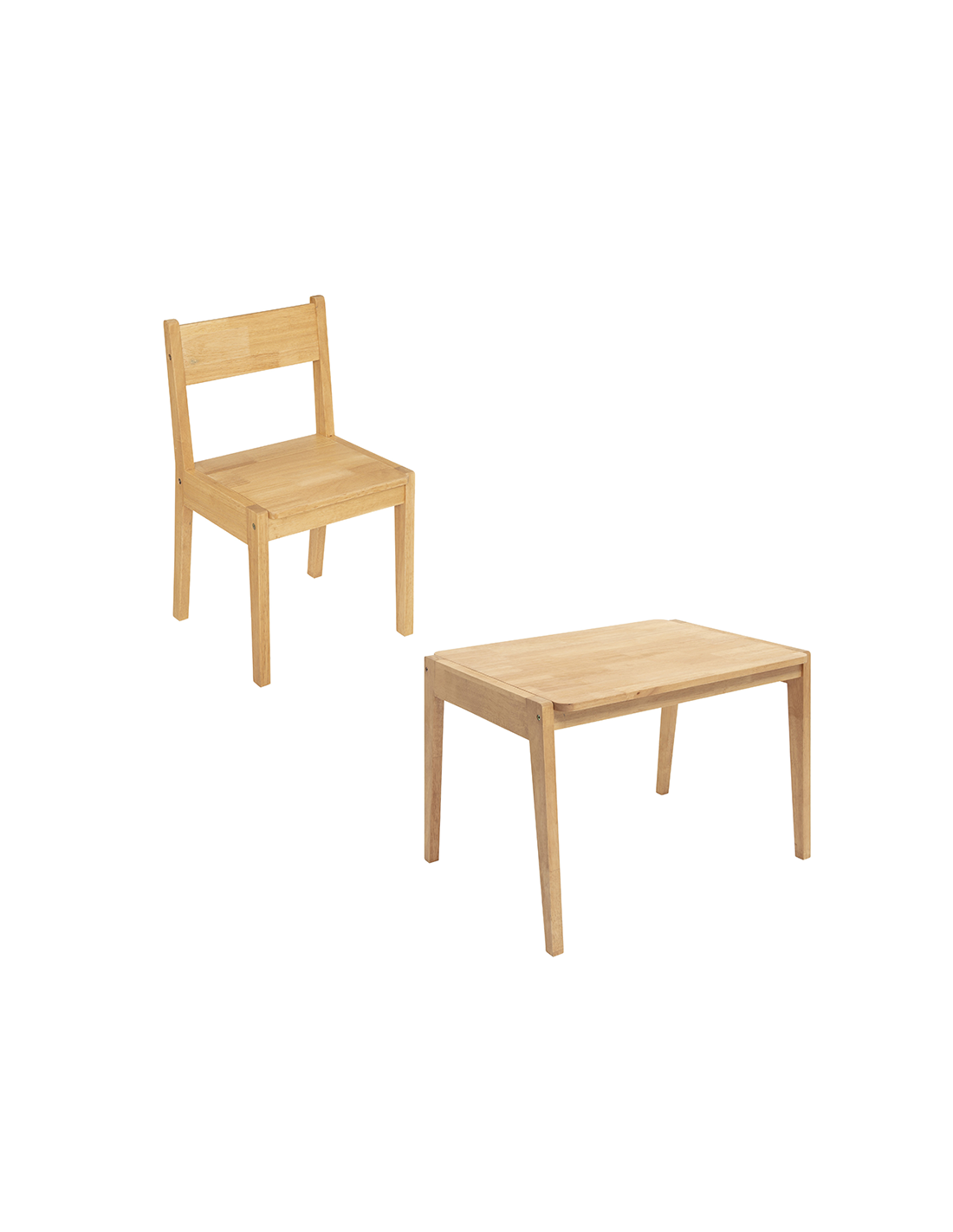 Ce pack est fabriqué en bois d'hévéa, un matériau respectueux de l'environnement. L'ensemble comprend une table et une chaise adaptées aux chambres d'enfants. Il est fonctionnel, pratique et apportera une touche agréable à toute chambre d'enfant ! Nous voulons créer des produits qui ne sont pas seulement beaux et fonctionnels, mais qui encouragent également les enfants à jouer ensemble en leur fournissant les meilleures conditions pour cela. Il est fonctionnel, pratique et comprend tout ce dont votre enfant a besoin dans sa propre chambre pour commencer à apprendre à mettre la table et à s'asseoir correctement à table.