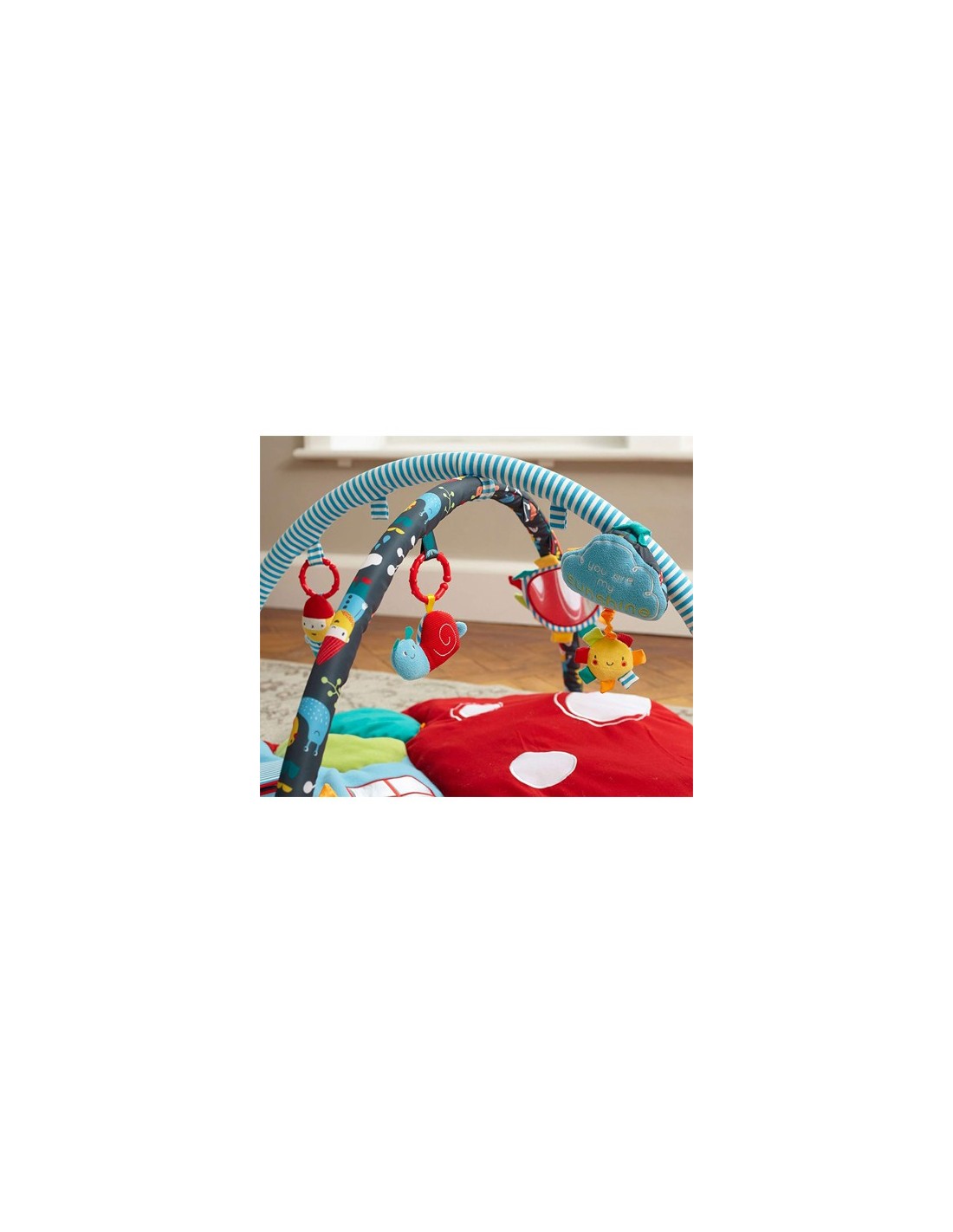Ce tapis de base est luxueusement rembourré, pour fournir un soutien et confort durs, les sols stratifiés. Il est livré avec un objectif double traversin qui fournit un appui-tête confortable ainsi que d'une poitrine soutien pour les activités de ventre. Deux Mini jouets divertir bébé avec couine et hochets et les deux viennent avec un anneau de dentition flexible qui permet aux jouets d'être permutés autour du tapis. Ils ont également la possibilité de s'adapter au lit pour bébé, sièges auto et poussettes. Un jouet musical amovible mesmerises petits avec une mélodie musicale (pas besoin de piles). Il peut être fixé aux sièges de voiture, poussettes et lits. La amovible grand miroir Baby Safe Play encourage la conscience de soi et de découverte. Look out pour masqué bruissant et couine sur le tapis de base. Le jouet arches sont amovibles et tous les jouets suspendus peuvent être attachés aux boucles sur le tapis de base créant un temps de "ventre" - Tapis d'activités interactif, qui aide à développer la force du haut du corps et la coordination.