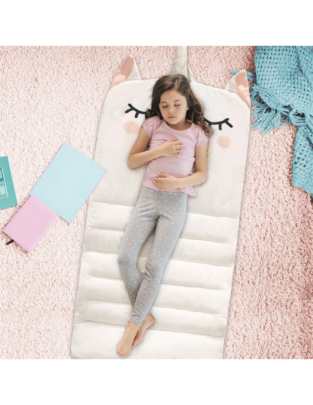 Espace détente ou espace de jeux, ce tapis de sieste illustré conquira le cœur de votre enfant, - Tapis rembourré - Design licorne - Facile à transporter et à plier, avec anse - Dimensions : 140x60 cm