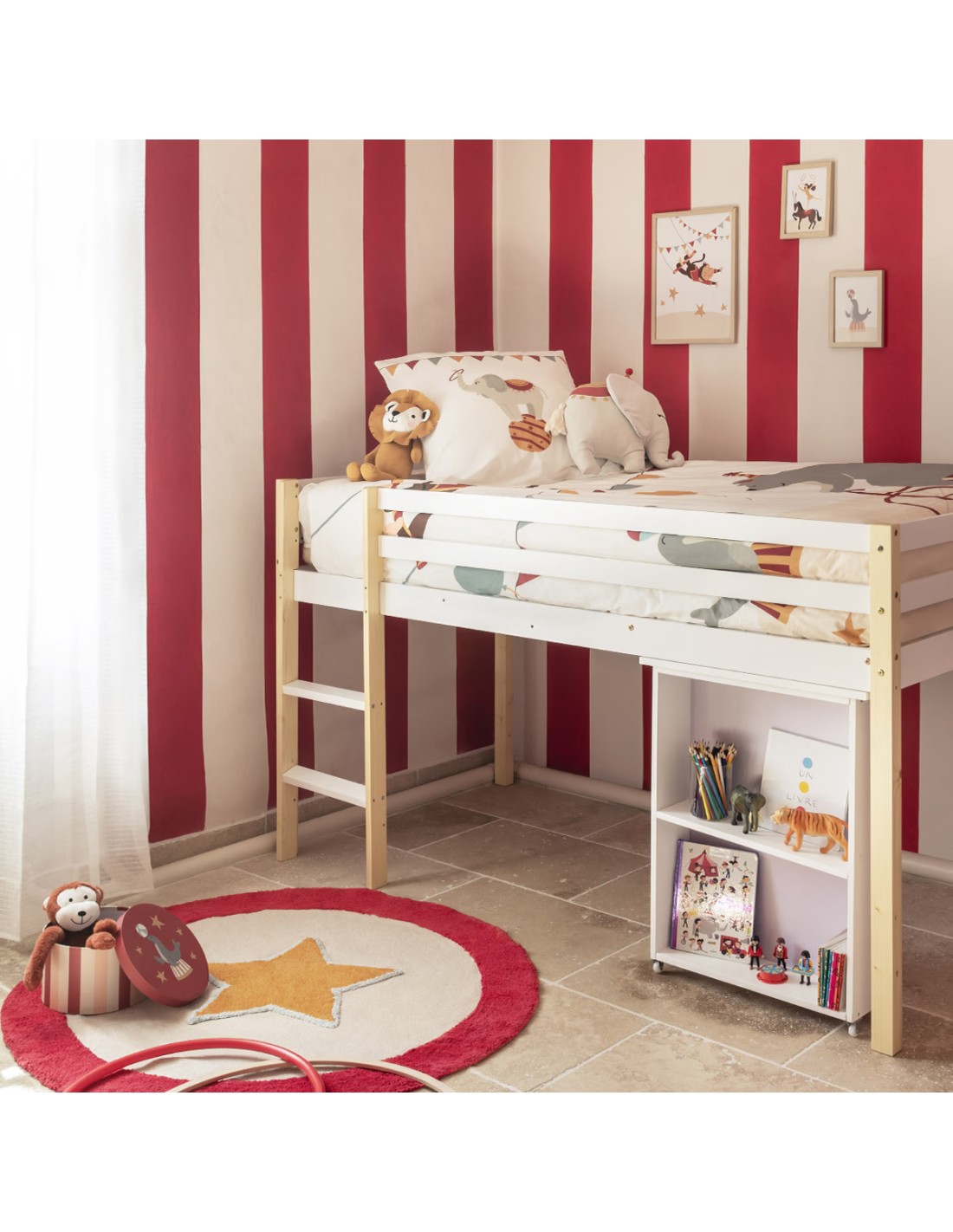 Entrez dans le monde magique du cirque avec le Tapis Rond Pour Enfant En Coton Cirque de la marque Atmosphera For Kids. Conçu pour captiver et inspirer, ce tapis apporte couleur et imagination à la chambre de votre enfant, tout en offrant un confort et une sécurité exceptionnels. Ce tapis rond arbore un design vibrant avec des motifs de cirque qui stimulent la créativité et l’imagination des enfants. Des couleurs vives et un dessin ludique en font une pièce centrale attrayante pour toute chambre ou aire de jeu. Le tapis est doté d'une base antidérapante qui assure la sécurité des petits aventuriers, évitant les glissades lors des moments de jeu. Sa surface douce offre également un excellent coussin pour les activités de votre enfant. Parfait pour ajouter une touche de joie et de fantaisie, ce tapis est idéal sous une table de jeu, à côté du lit, ou comme espace dédié aux jeux de rôle. Il transforme n'importe quel espace en une zone de jeu accueillante et stimulante.