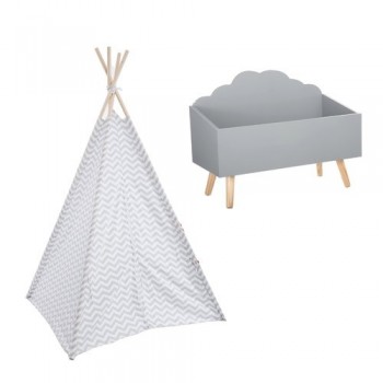 Tipi enfant Gris + Coffre à jouets Nuage Gris