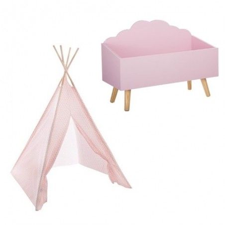Tipi enfant Rose + Coffre à jouets Nuage Rose