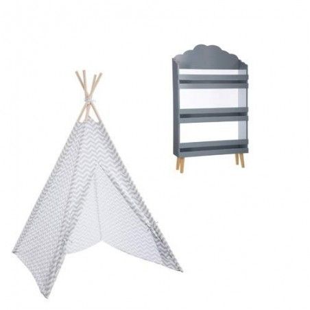 Tipi gris enfant + Bibliotheque nuage gris Atmosphera