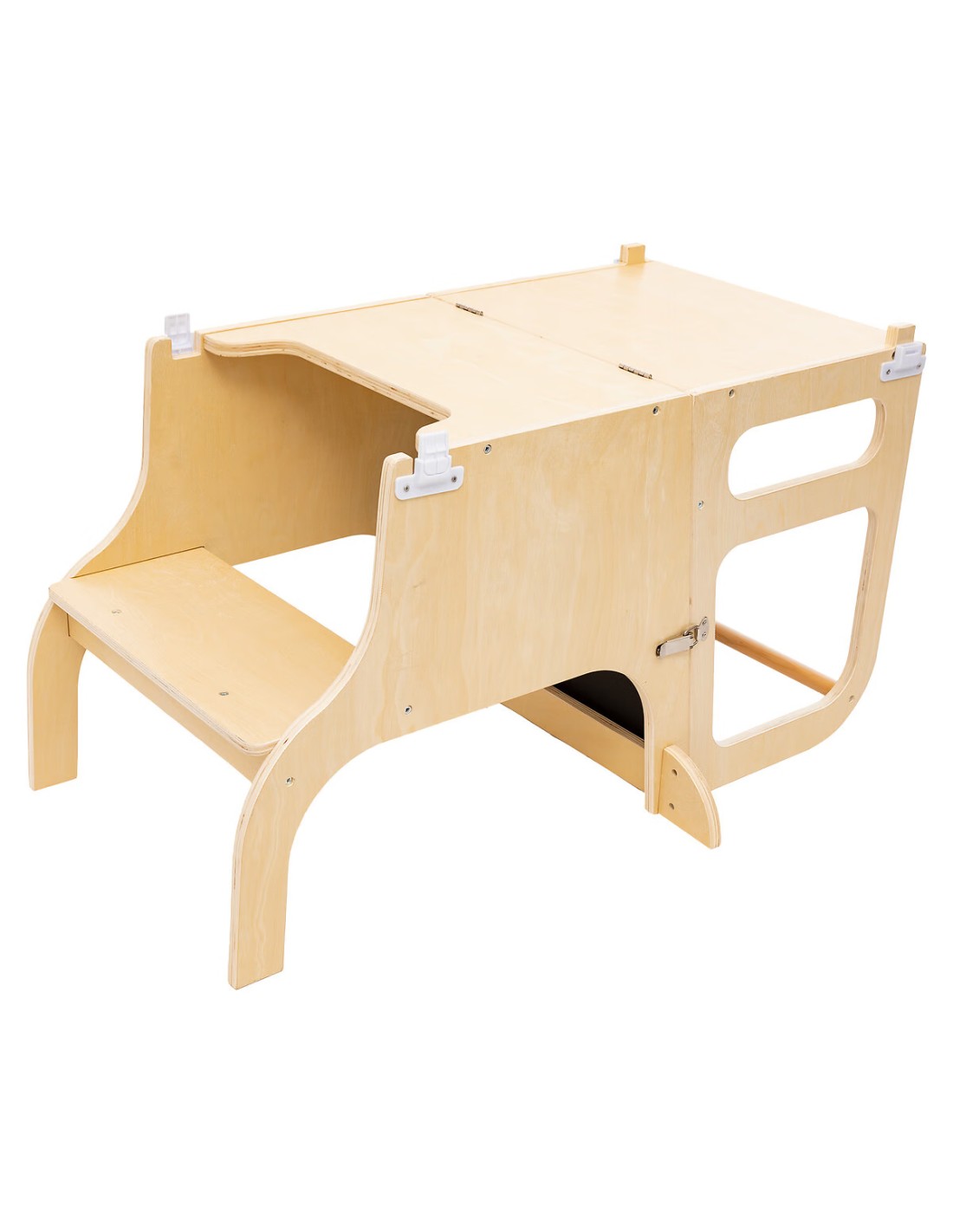 Favorisez l'autonomie et stimulez la curiosité de votre enfant avec la Tour d'Observation 2 en 1 Bureau Alba d'Atmosphera for Kids. Cette pièce innovante transforme l'apprentissage et la participation aux activités familiales en une aventure quotidienne, tout en offrant une transition facile vers un espace de travail créatif. Un produit révolutionnaire qui sert à la fois de tour d'observation et de bureau. En position tour, elle permet à votre enfant d'atteindre en toute sécurité les surfaces plus hautes et de participer aux activités de cuisine ou de bricolage. Convertissez-la facilement en bureau pour offrir un espace idéal pour dessiner, écrire ou jouer. Conçue avec l'attention à la sécurité, la tour présente des barrières robustes pour éviter les chutes. Sa structure en bois solide assure une base stable, permettant à votre enfant de se tenir debout en toute confiance. Permet aux enfants de monter et d'explorer en toute sécurité, encouragent leur indépendance et leur confiance en soi tout en les intégrant dans les activités quotidiennes du foyer. La transformation de la tour en bureau est simple et rapide, sans outils supplémentaires requis, ce qui la rend pratique pour un usage quotidien selon les besoins changeants de votre enfant.