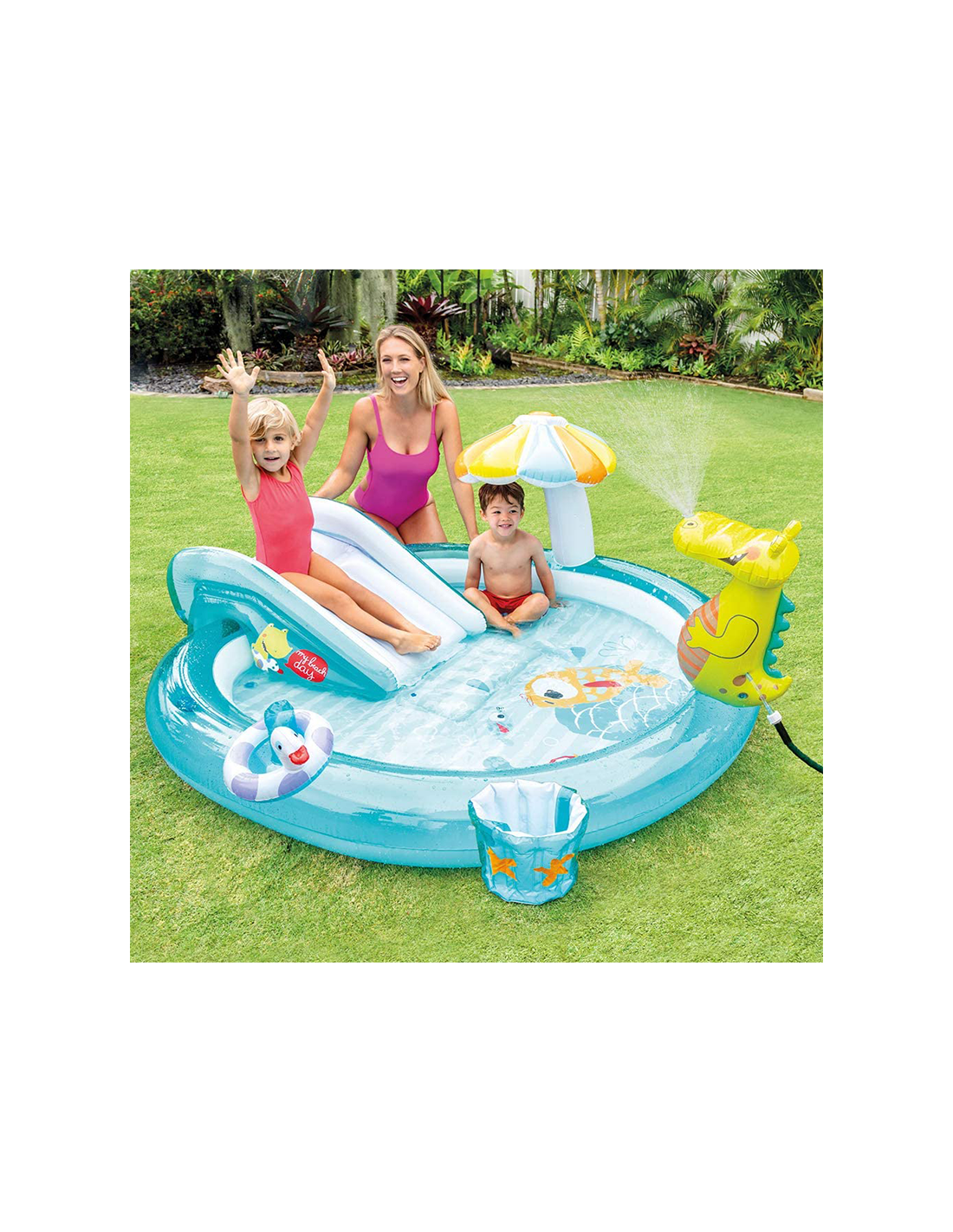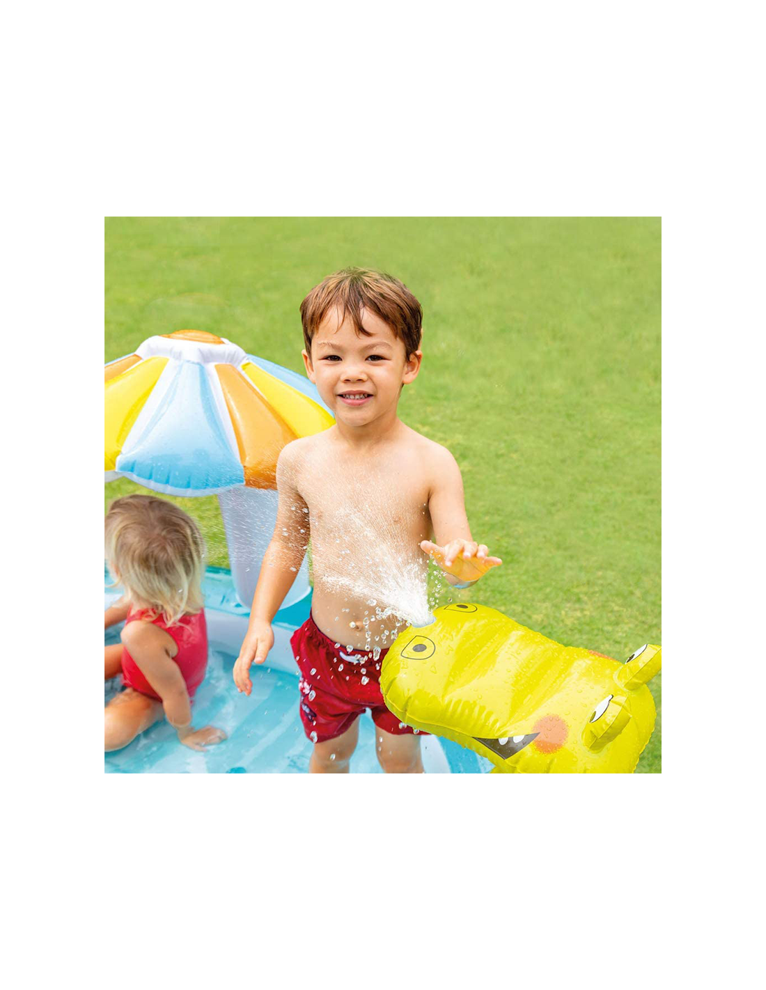 Cet aire de jeux gonflable Alligator Intex plein de surprises offre aux enfants un monde de jeu et de fantaisie. Cet été sera très amusant parce que vos petits ne voudront pas en sortir lorsqu'ils essaieront cet aire de jeux aquatiques.