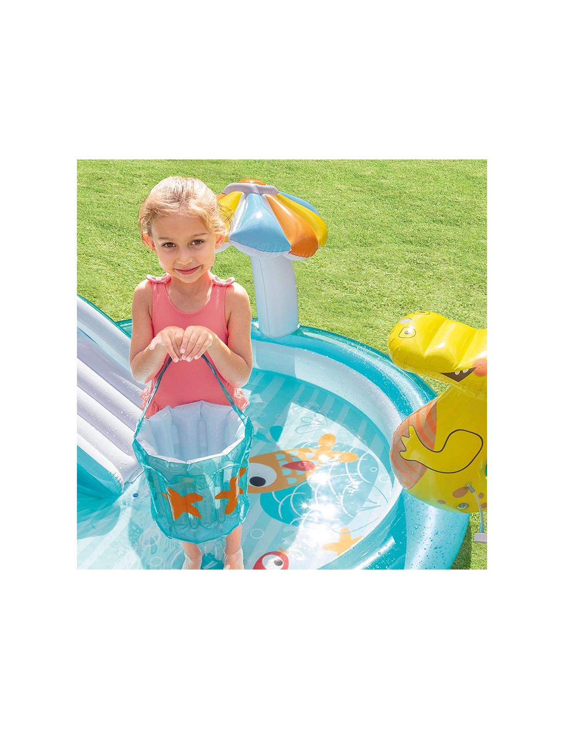 Inclus : Ombrelle champignon, 1 petit canard et un seau gonflable
