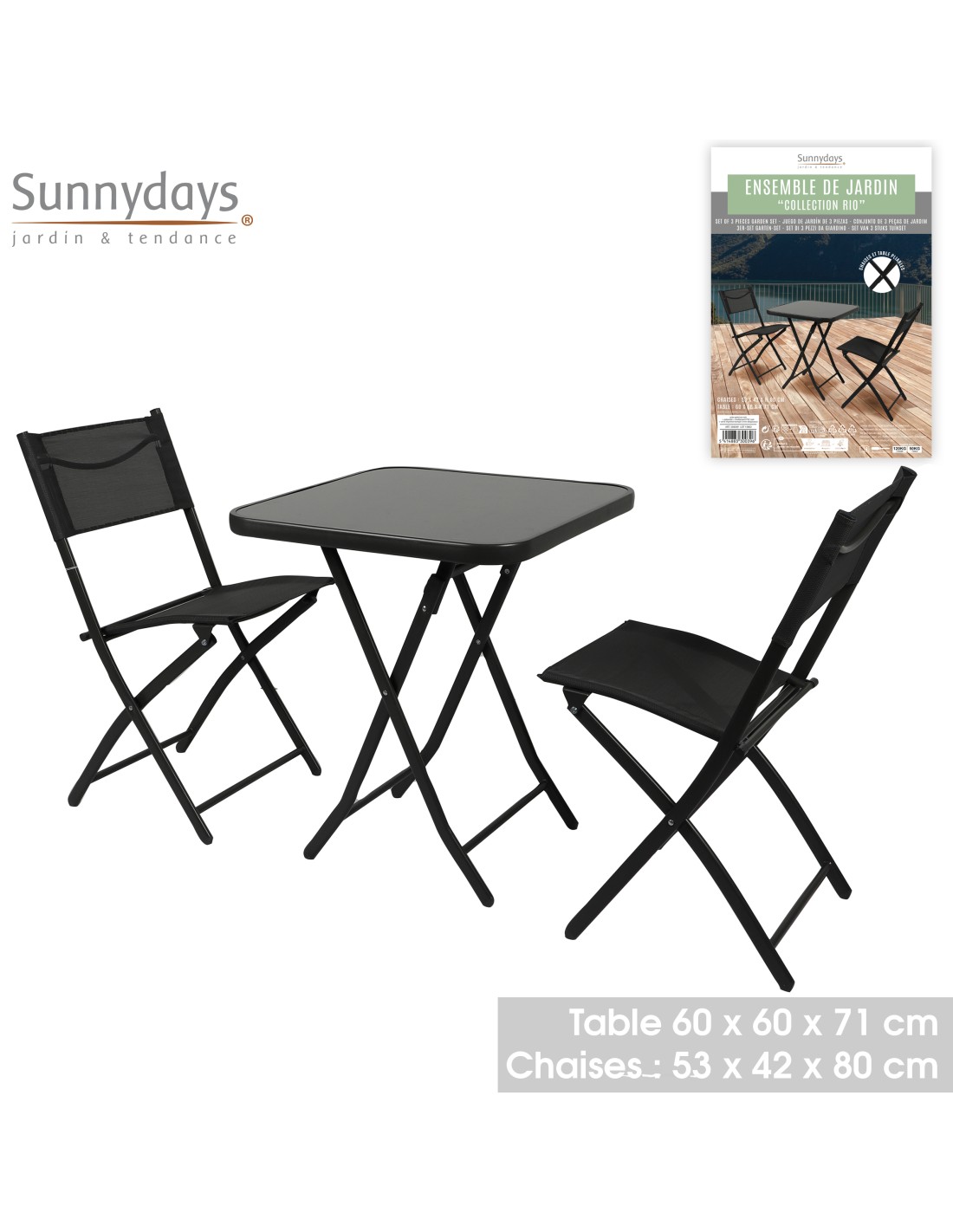 Caractéristiques sur le Ensemble De Jardin Table Avec 2 Chaises Noir Five :