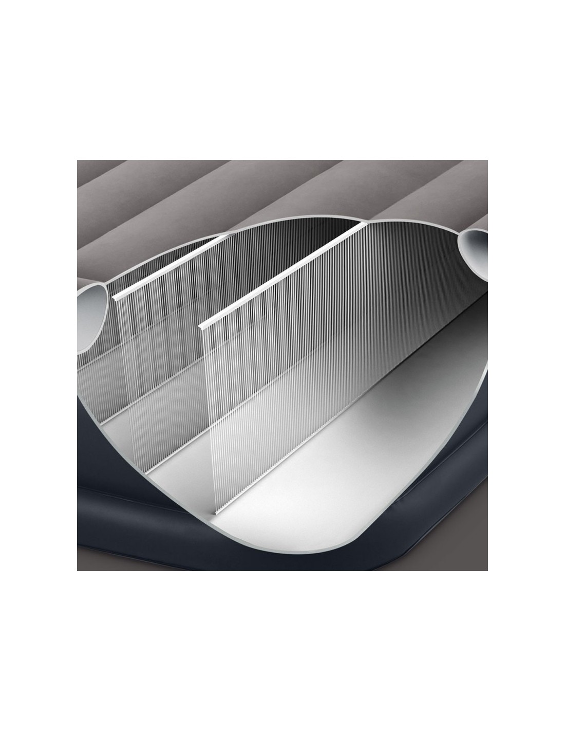 Avec la structure Fiber Tech votre matelas est plus solide, plus léger et plus confortable. Vous avez le matelas et sommier 2 en 1. Le gonfleur électrique de 220V est intégré et gonflage ou dégonflage est rapides d’environ 3 minutes. Flocage sur le dessus et Matière : Vinyle.