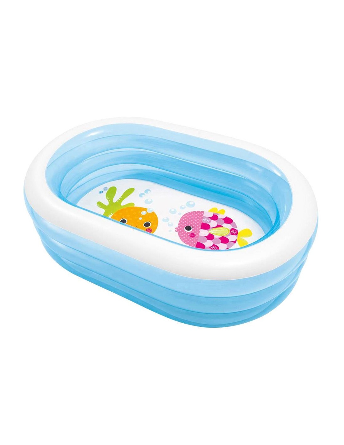 Cette piscine gonflable ovale bleue, idéale pour les enfants. Piscine gonflable facilement pour une qualité optimale. Elle peut accueillir votre enfant et ses amis.  Vos enfants s'éclateront avec cette piscine de la marque Intex idéal pour l'été. Le fond de la piscine a un décor coloré sur le thème : les animaux marins pirates.
