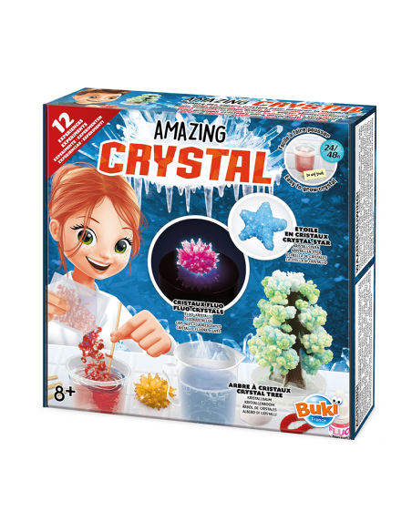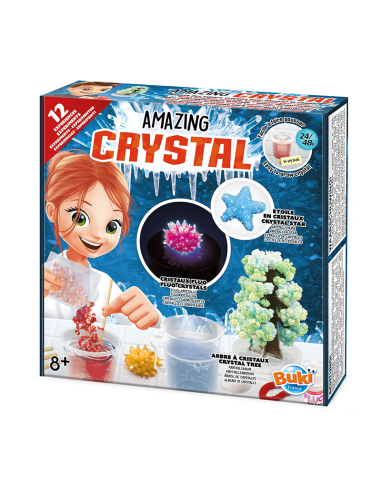 Faites pousser douze cristaux surprenants et magnifiques: découvrez l'arbre de cristal, fabriquez votre propre bijou en cristal ou laissez fleurir un méga cristal. Placez vos cristaux sur le plan de la lumière et regardez la lumière traverser le cristal! Nous utilisons un micro-ondes pour réaliser les activités plus rapidement et en toute sécurité.