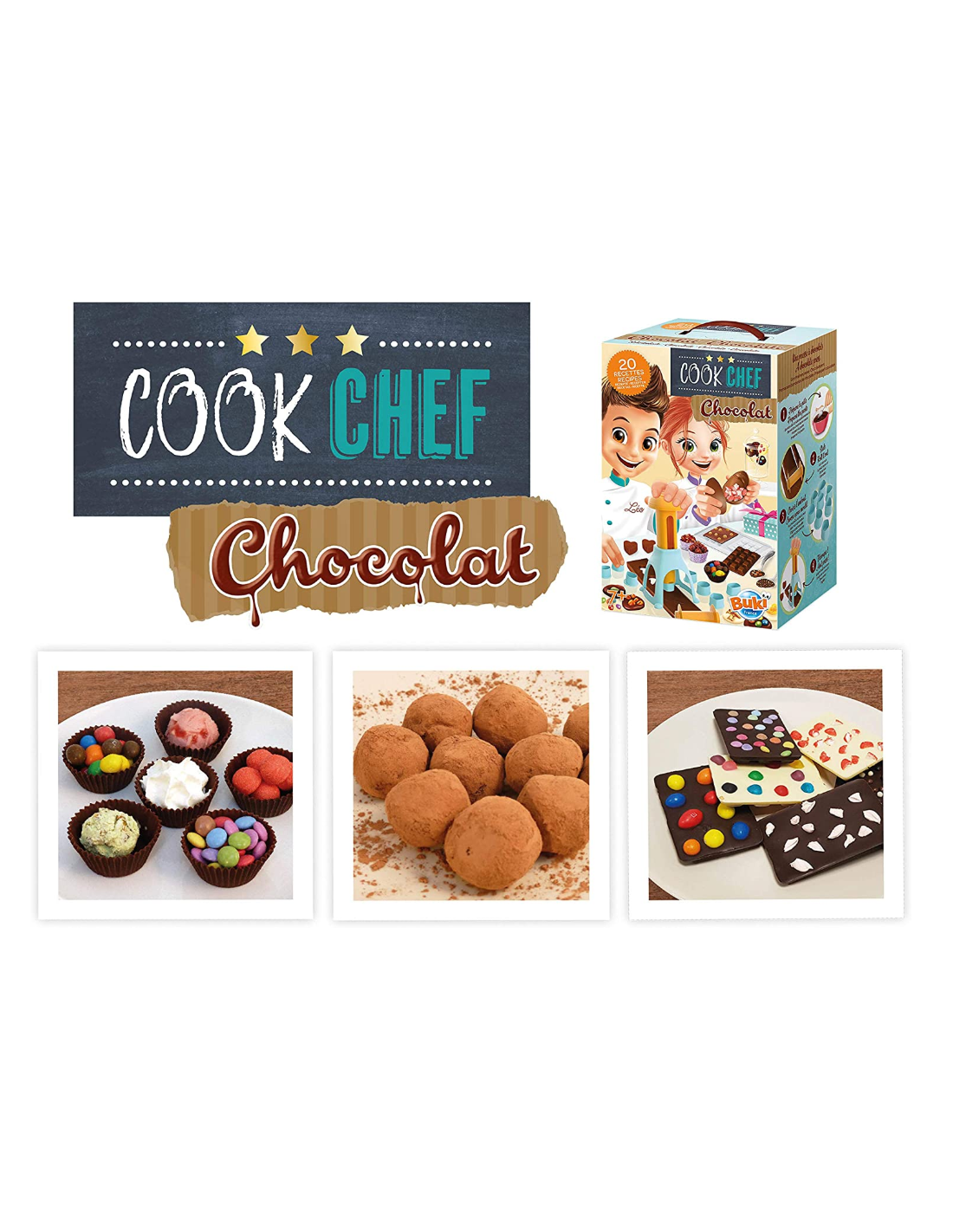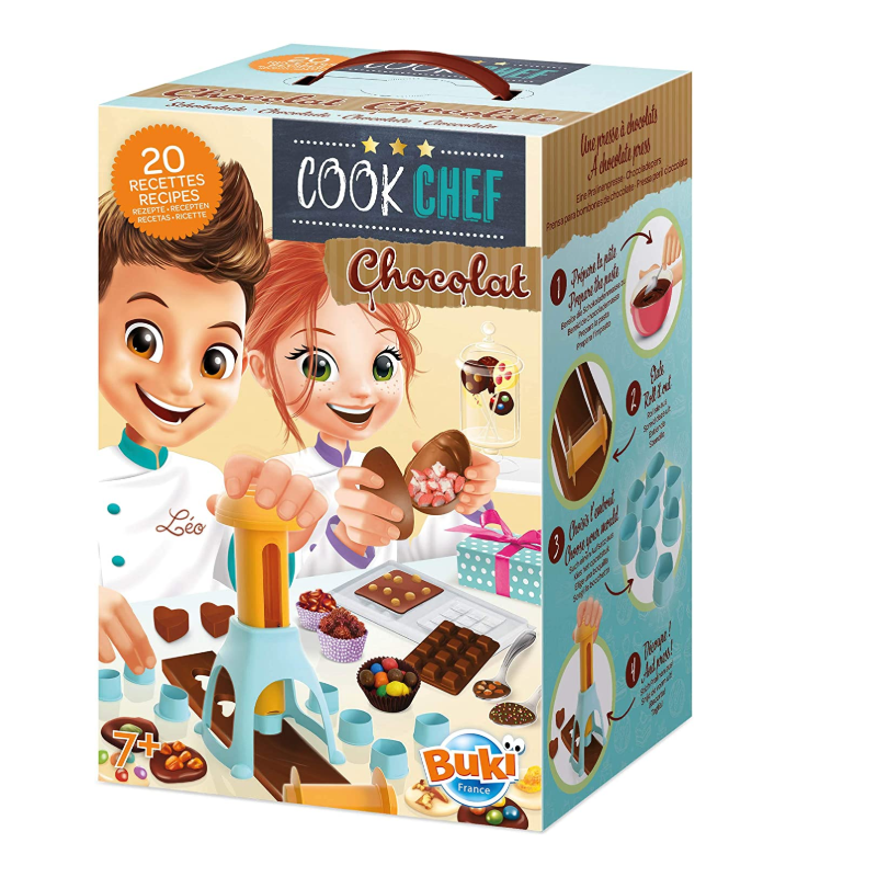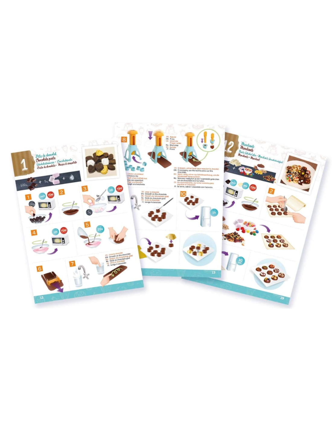 Prépare de la pâte de chocolat et utilise la presse pour créer des chocolats de différentes formes ! Tu pourras également préparer des tablettes, des sucettes, des œufs garnis et des œufs surprise avec les accessoires et moules fournis ! Ce jouet dispose de 20 recettes expliquées étape par étape dans la notice illustrée en couleurs.