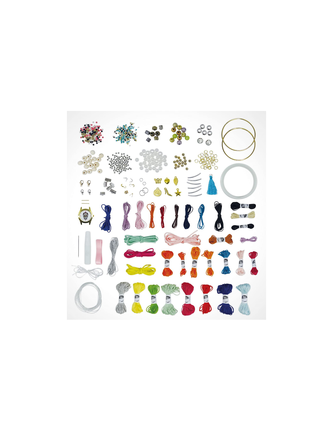 Un coffret pour réaliser 20 bracelets de toutes sortes: bracelets avec perles, bracelets rubans, bracelets d’amitié, bracelets manchettes…. un cadran de montre inclus pour lequel tu vas tisser le bracelet !