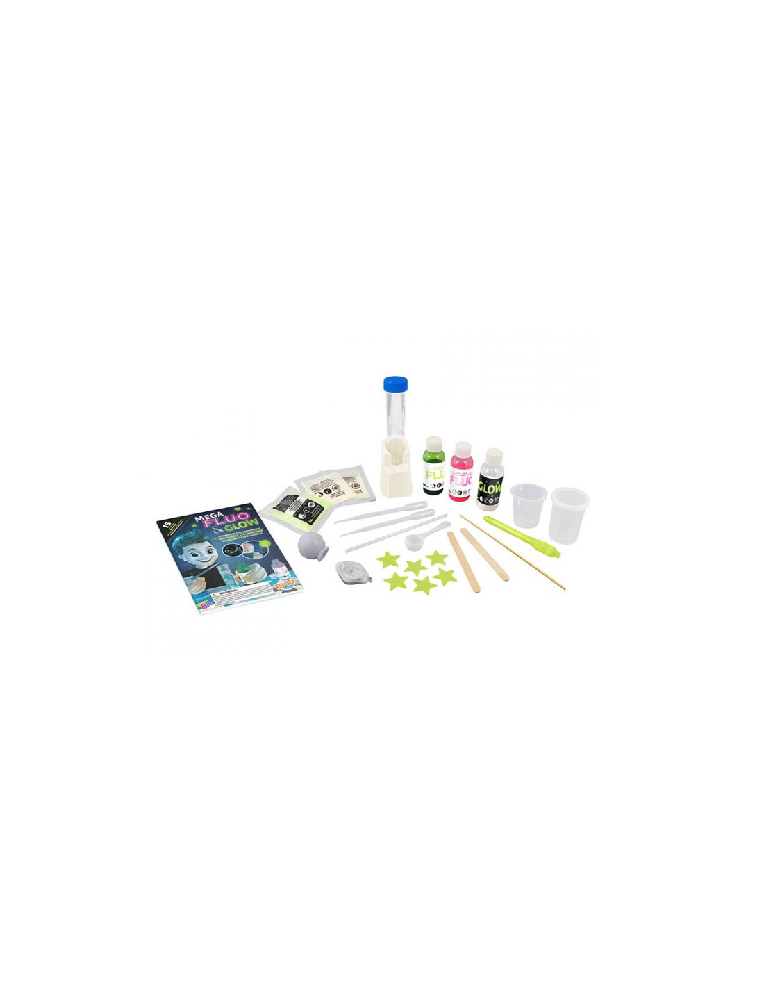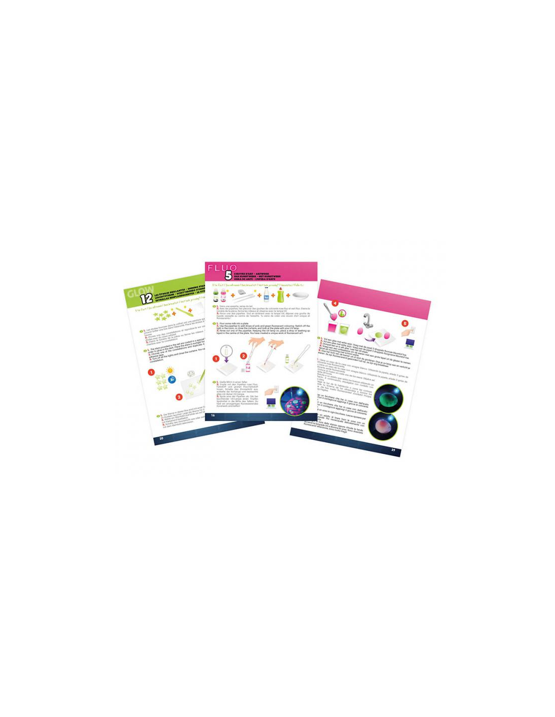 Tu peux allumer la lampe à UV afin d'admirer les colorants fluorescents. Fabrique du slime et des balles rebondissantes phosphorescentes qui brillent la nuit.