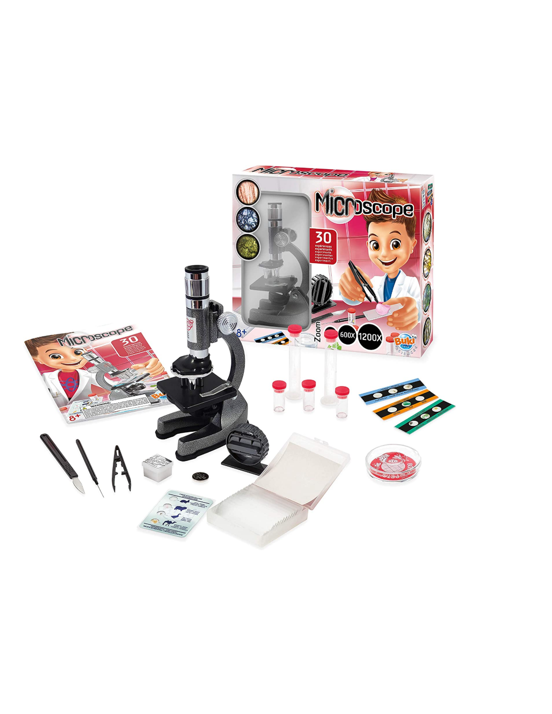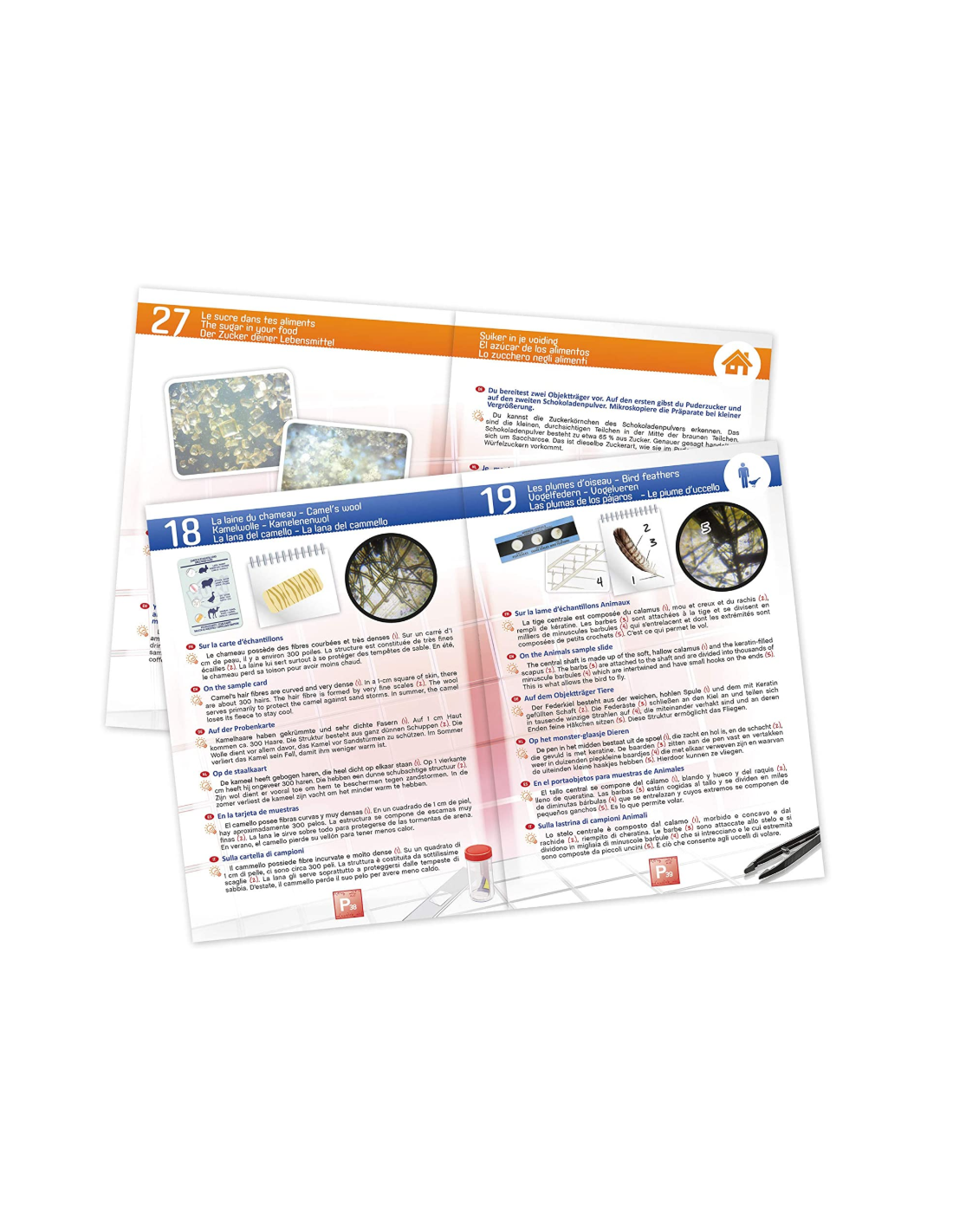 - Nombreux accessoires inclus : lames, pince, 4 fioles, boîte de Petri, micro-trancheuse, étiquettes, aiguille et 4 lames d'échantillons