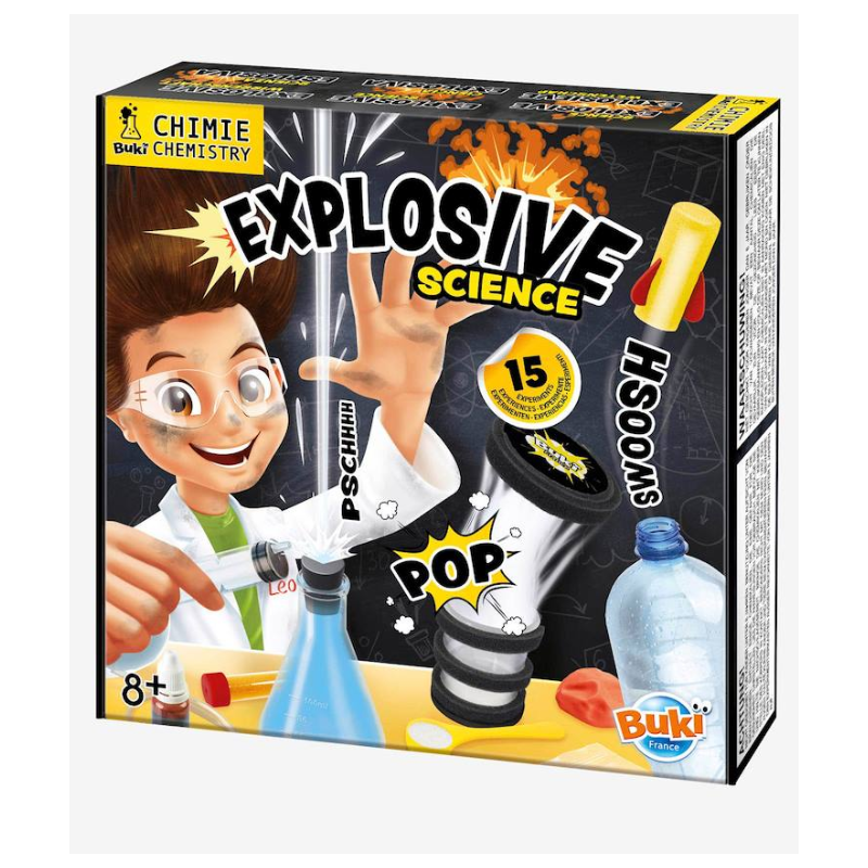 Découvre un tas d'expérience explosive avec Science Explosive de la marque Buki. Au programme 15 expériences tels que: la bombe, le geyser et même la fusée !