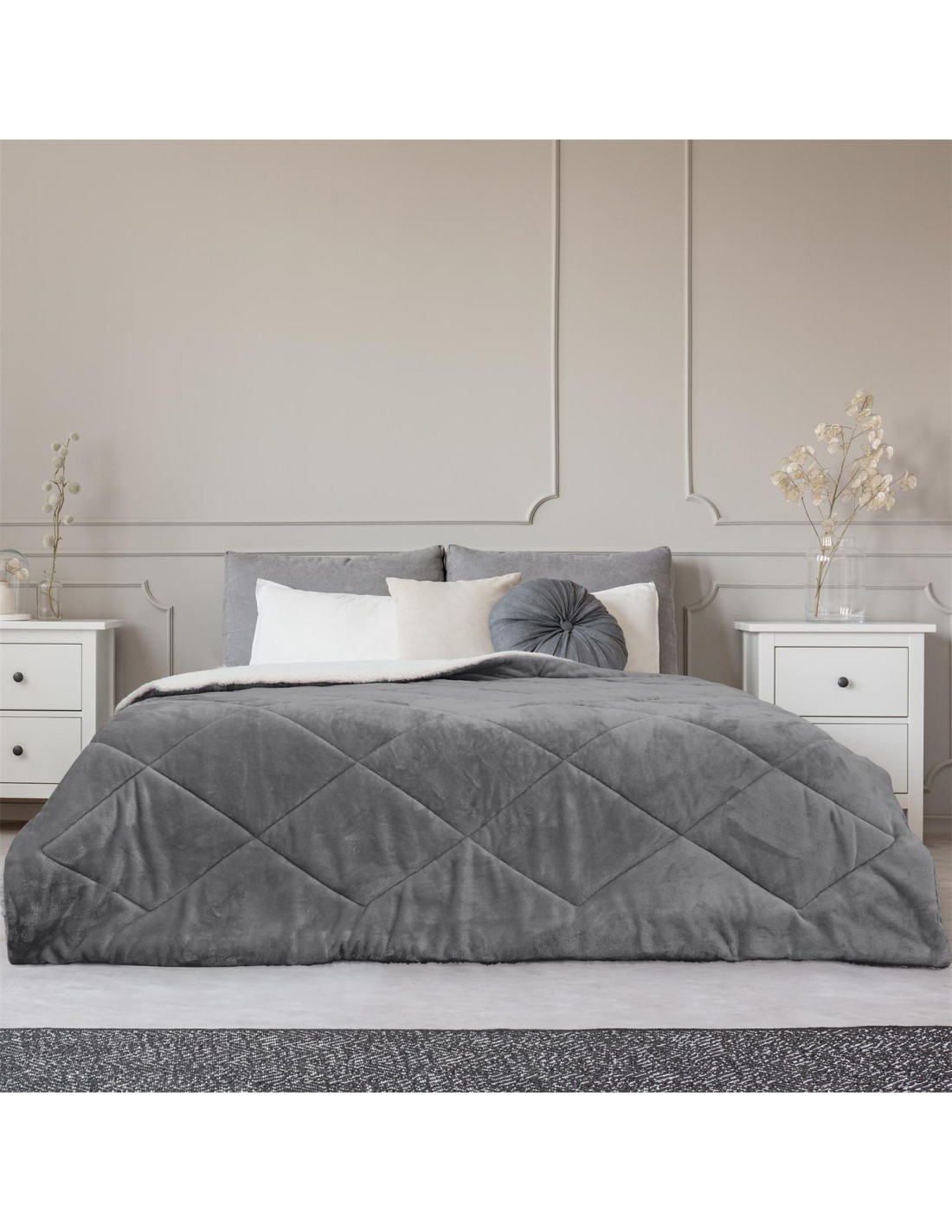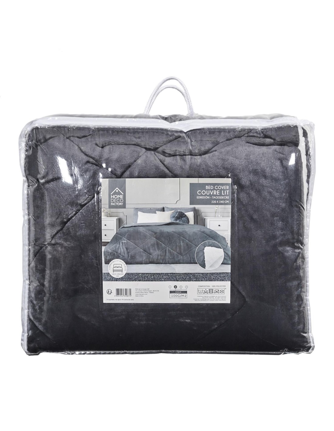 Caractéristiques sur le Couvre Lit Flanelle Sherpa Gris Home Deco Factory :