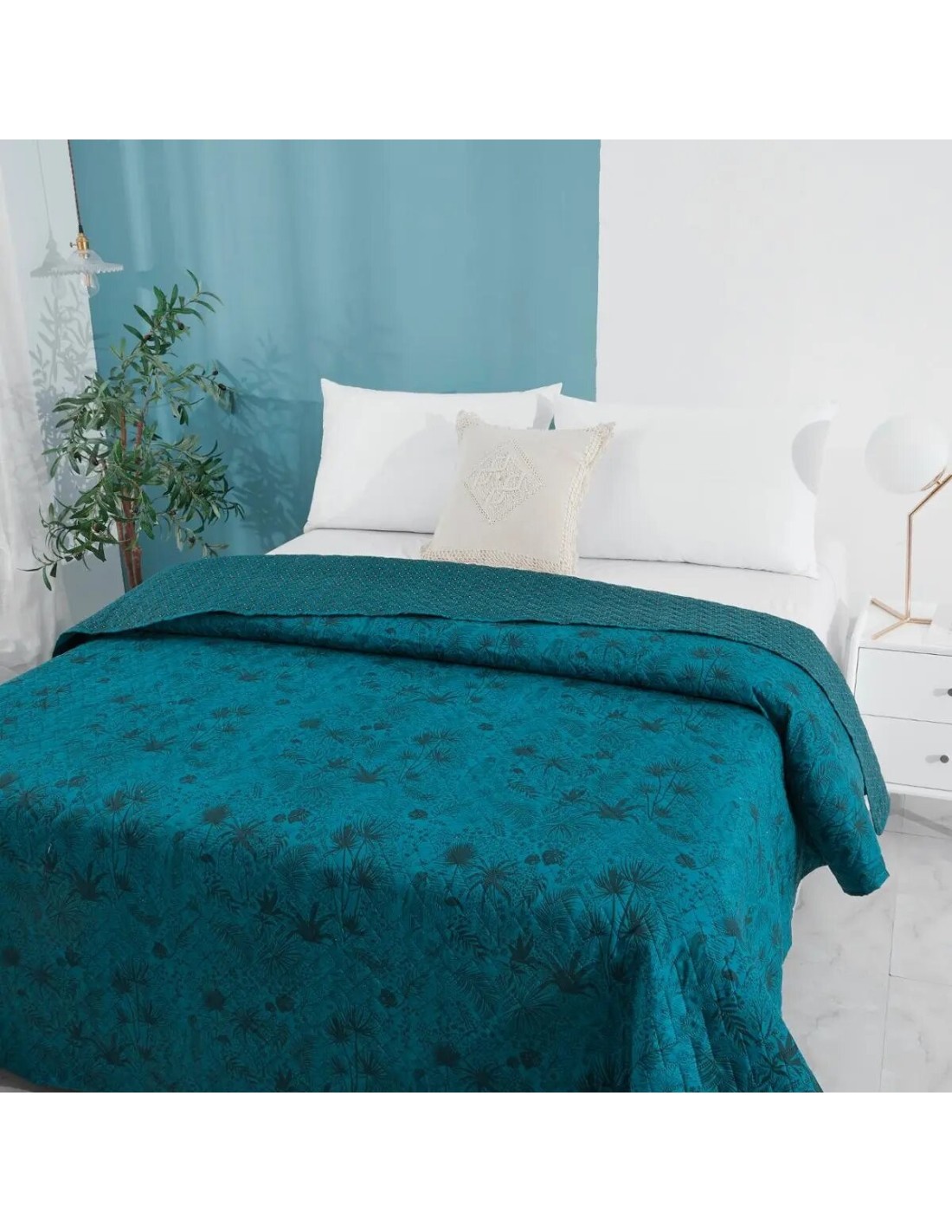 Caractéristiques sur le Dessus De Lit Imprimé Tropika Bleu Canard 240x220 Atmosphera :