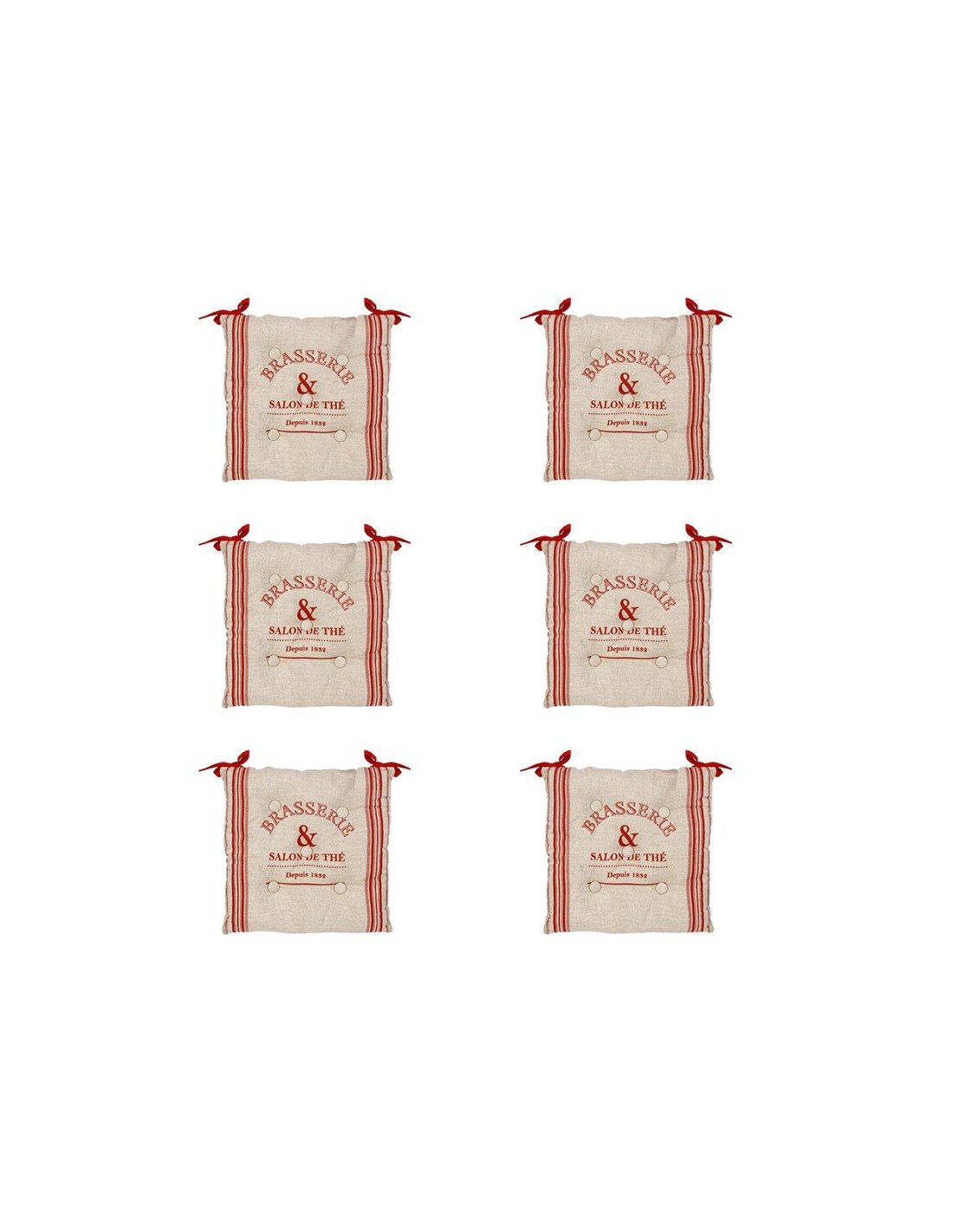 - Ce lot est composé de 6 galettes de chaises qui s'attachent simplement à tous types de chaises avec les deux liens.
