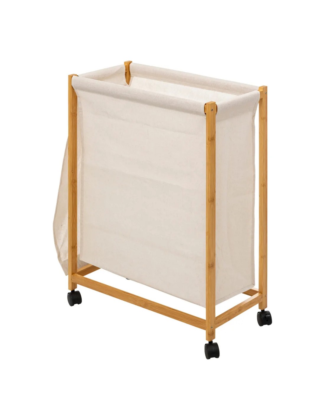Caractéristiques sur le Panier À Linge Roulant 52 L En Bambou Beige Five :