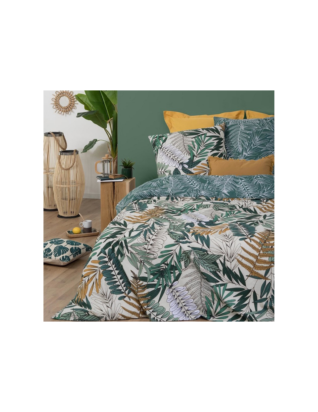 Imaginez une escapade dans une île lointaine, où chaque nuit vous emporte au milieu d’une jungle luxuriante et de plages idylliques. La parure imprimée Tropik transforme votre chambre en un sanctuaire exotique, où repos et aventure cohabitent en harmonie. Les motifs soigneusement choisis évoquent une nature sauvage et apaisante, avec des feuilles tropicales et des couleurs éclatantes qui invitent à l'évasion. Laissez-vous séduire par une ambiance qui respire la fraîcheur et la vitalité des tropiques.