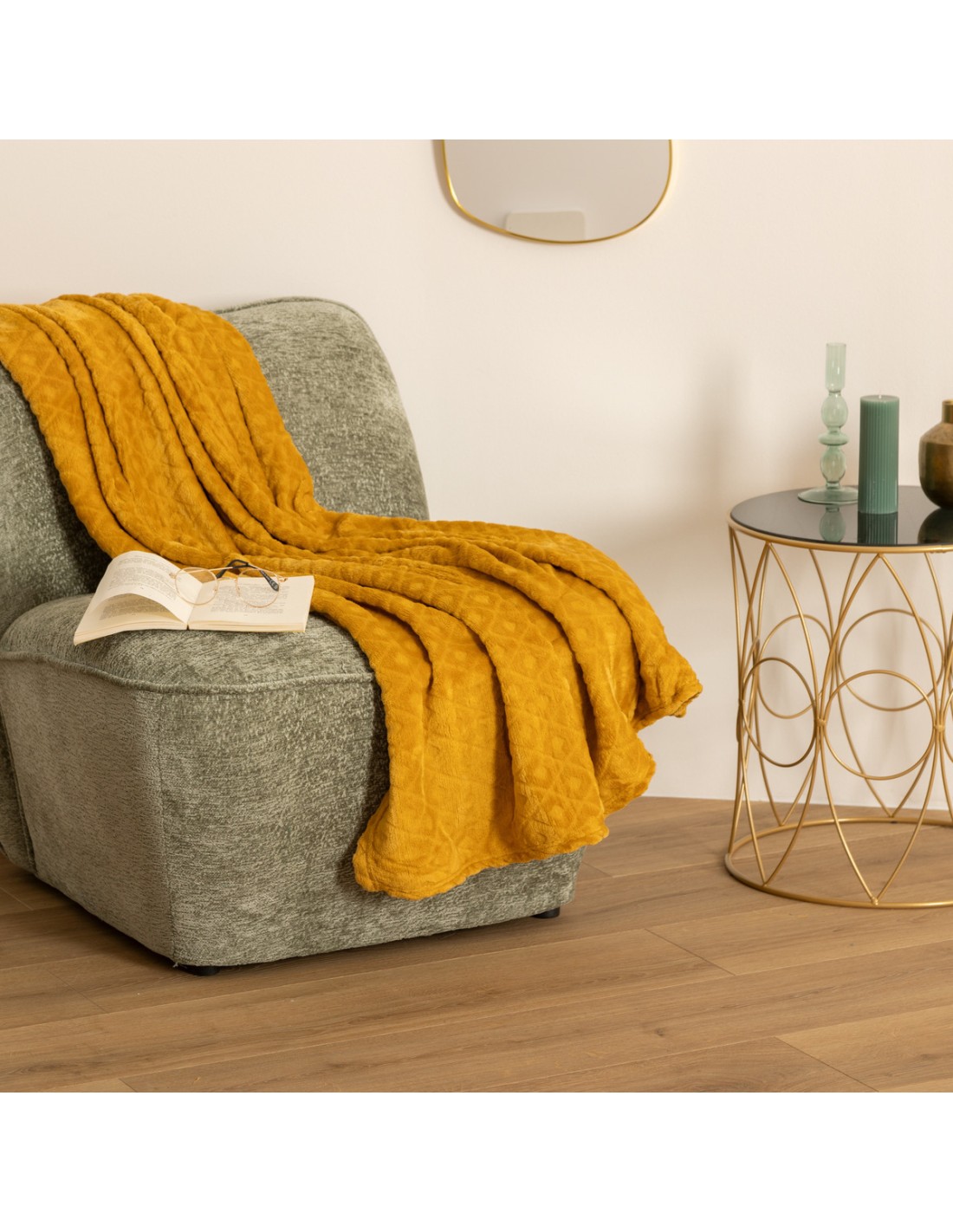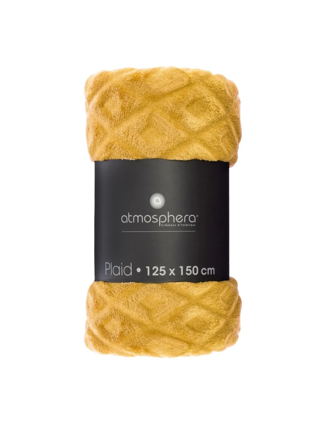 Caractéristiques sur le Plaid 3D losanges 125x150 Ocre Atmosphera :