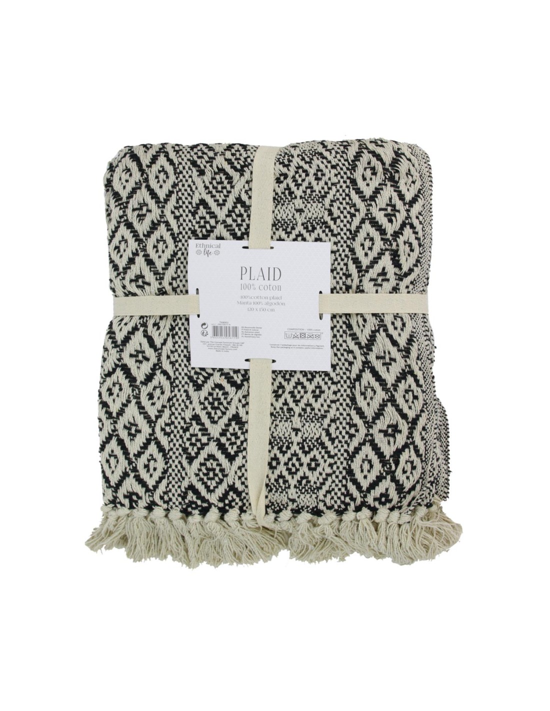 Caractéristiques sur le Plaid À Franges Ethnik Ecru Noir Home Deco Factory :