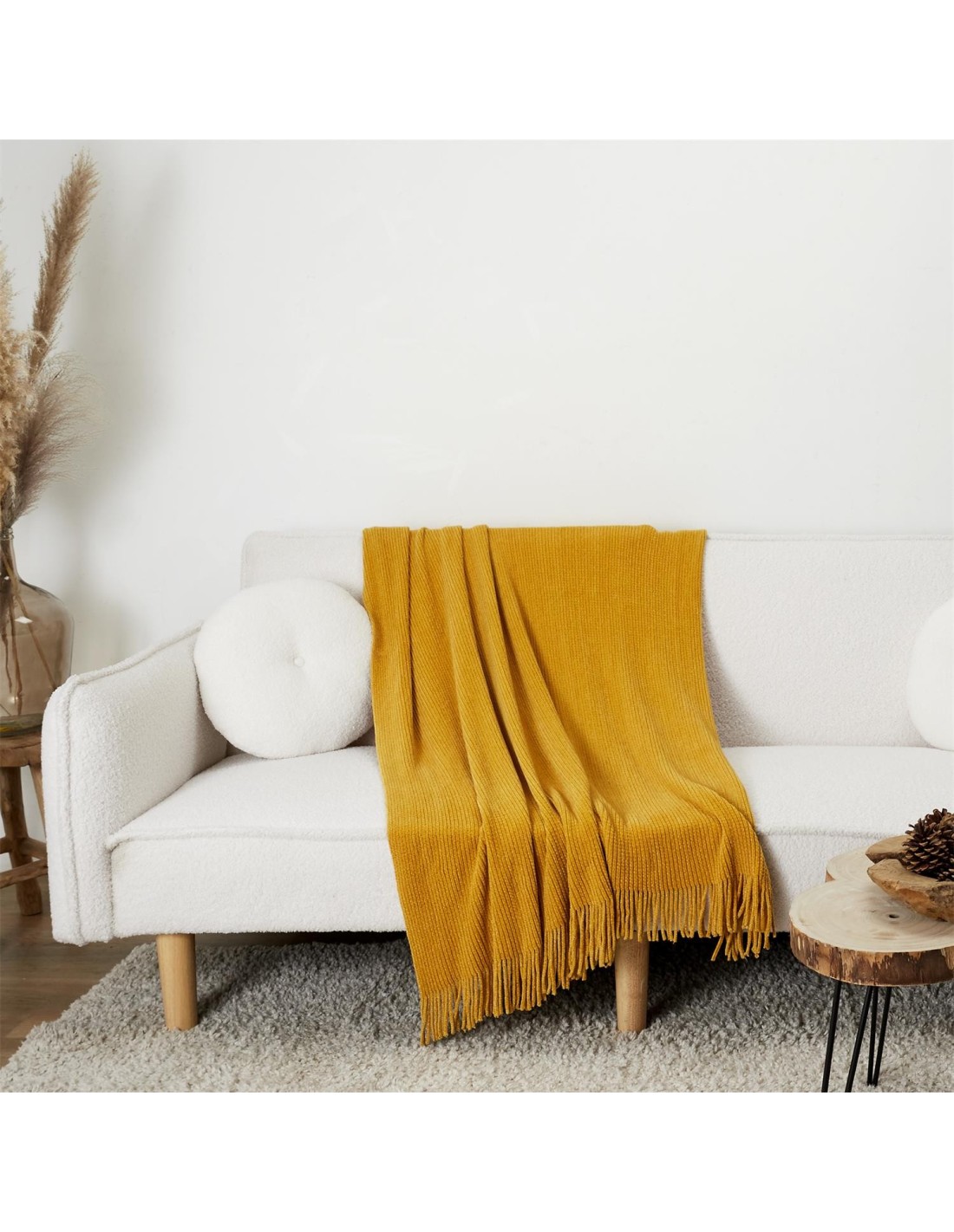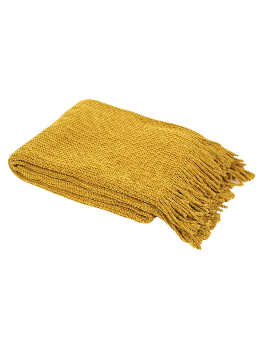 Caractéristiques sur le Plaid Chenille Frange Jaune Moutarde - Home Deco Factory :