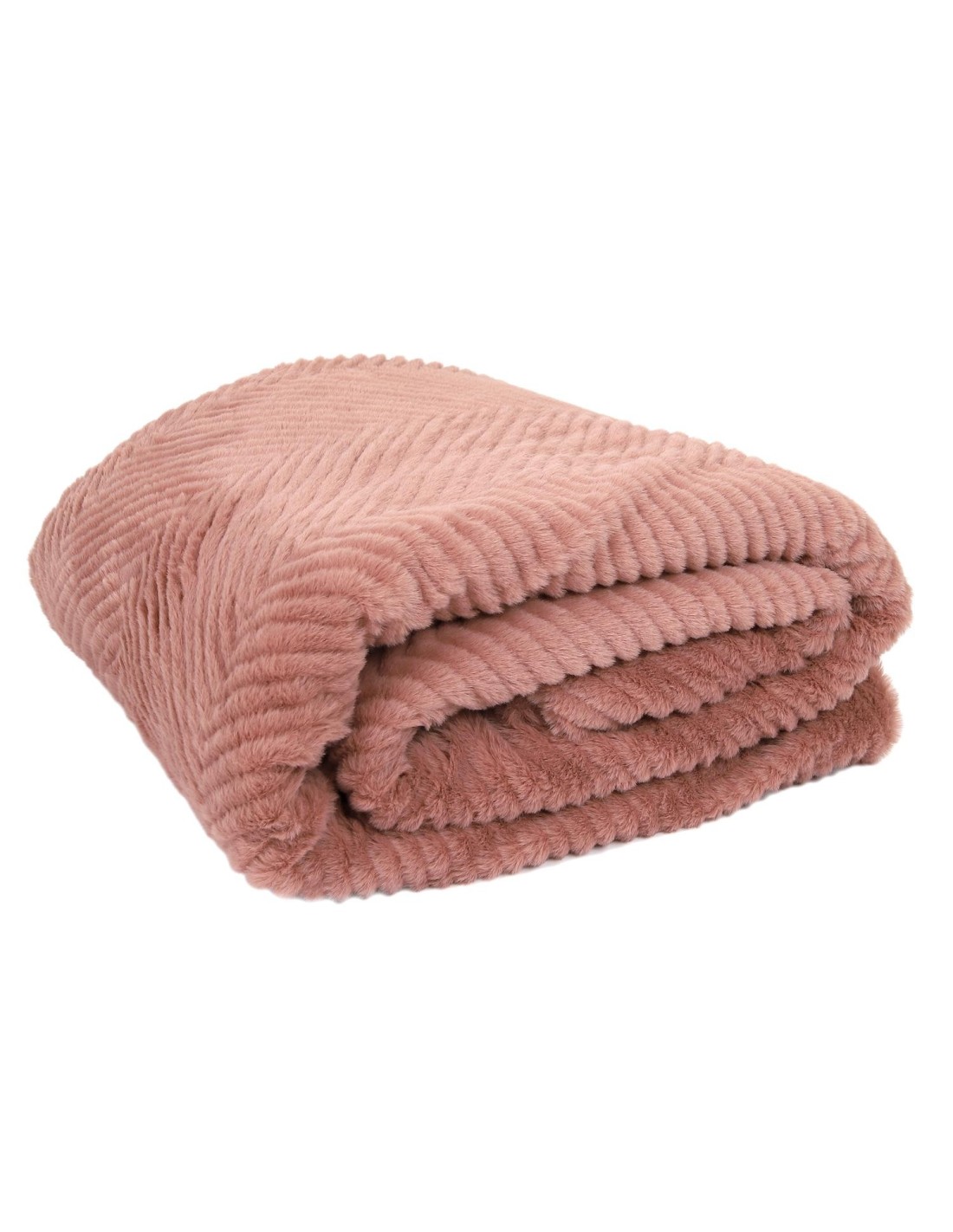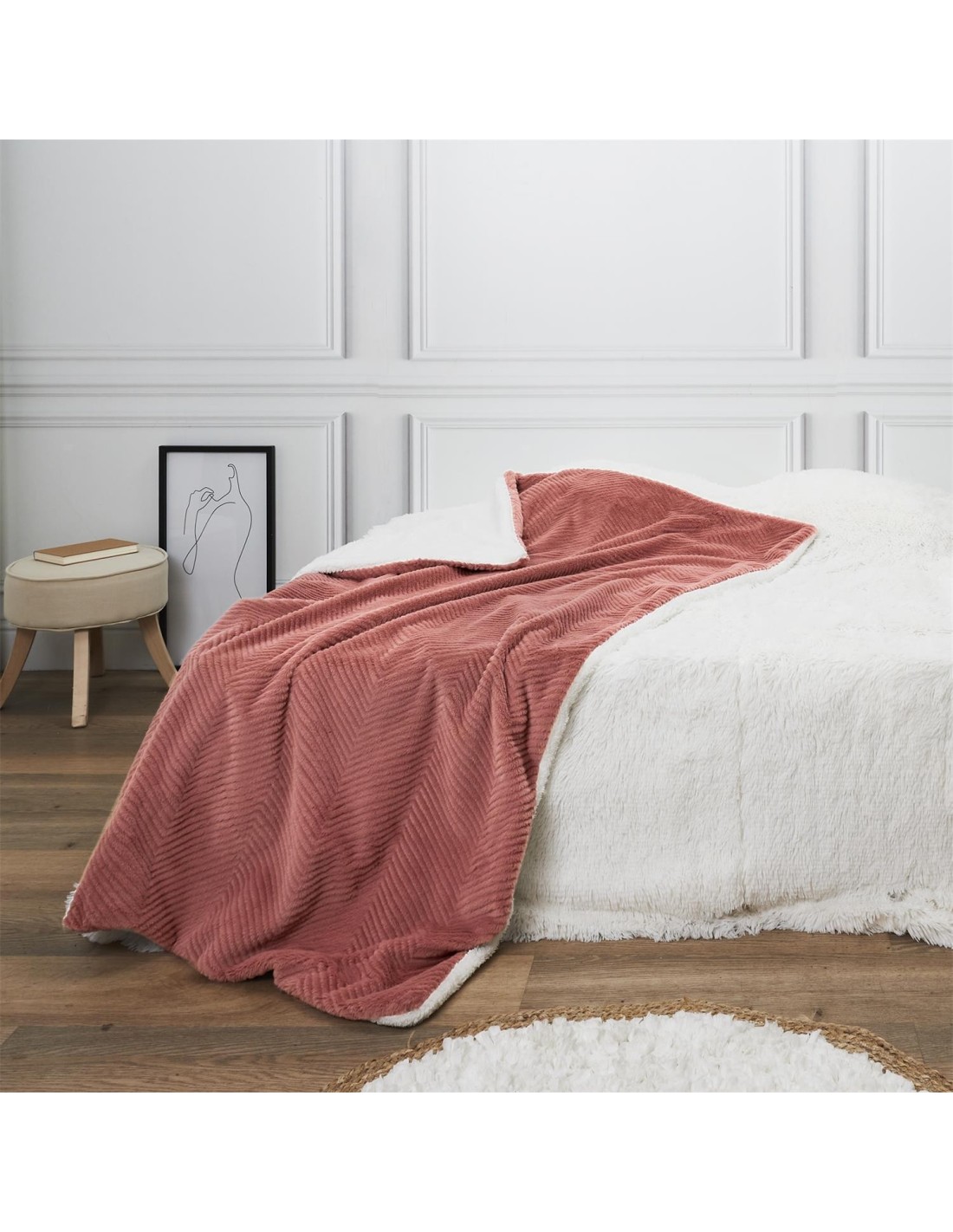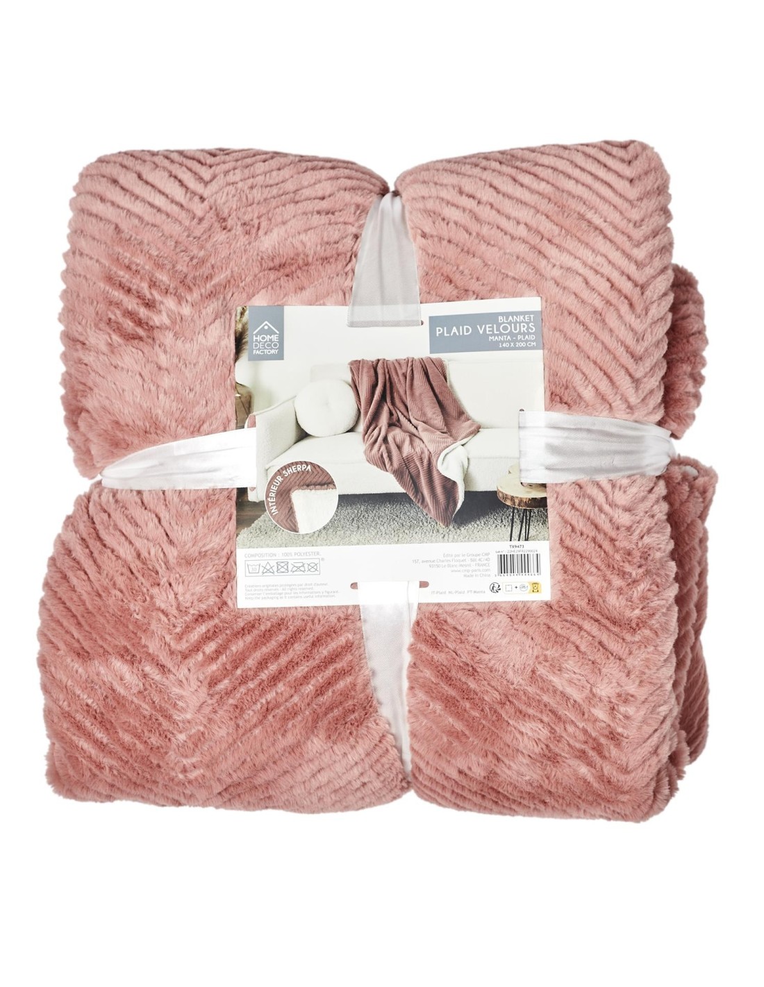 Caractéristiques sur le Plaid Imitation Fourrure Rose Sherpa 140x200 - Home Deco Factory :
