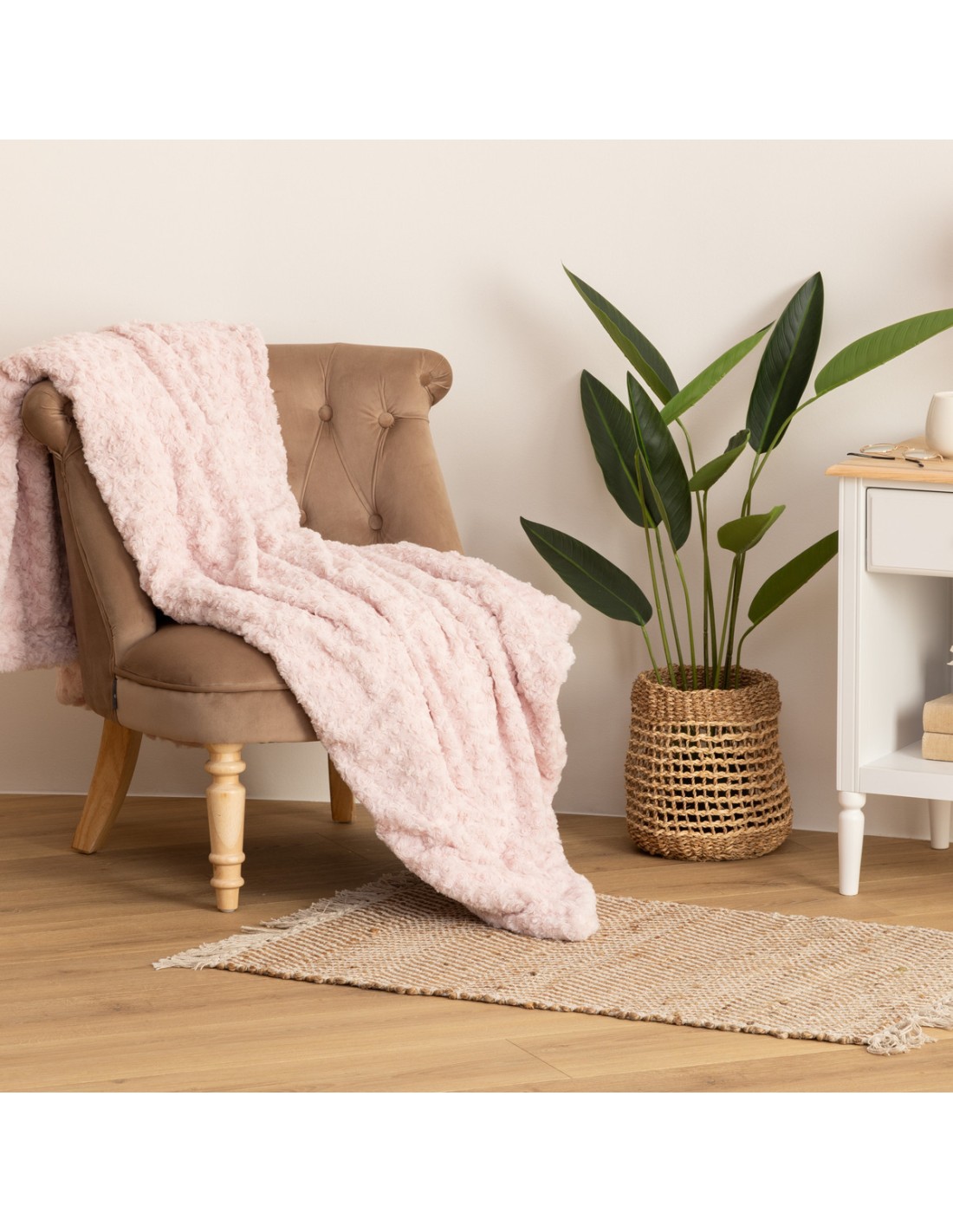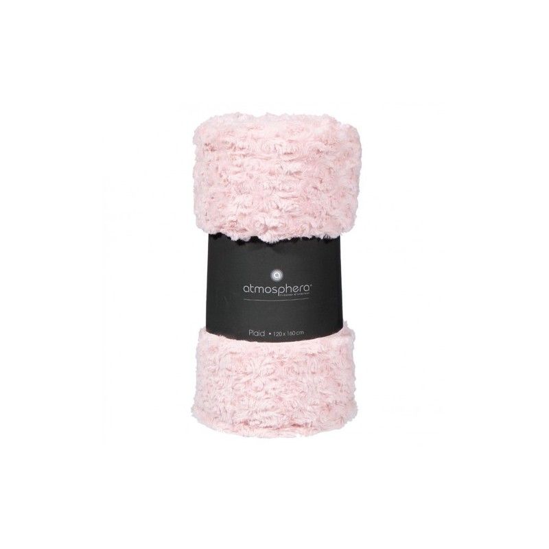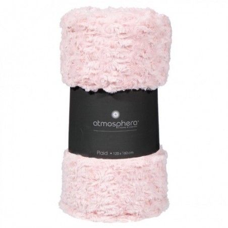 Plaid rose effet fourrure bouclée 180x230