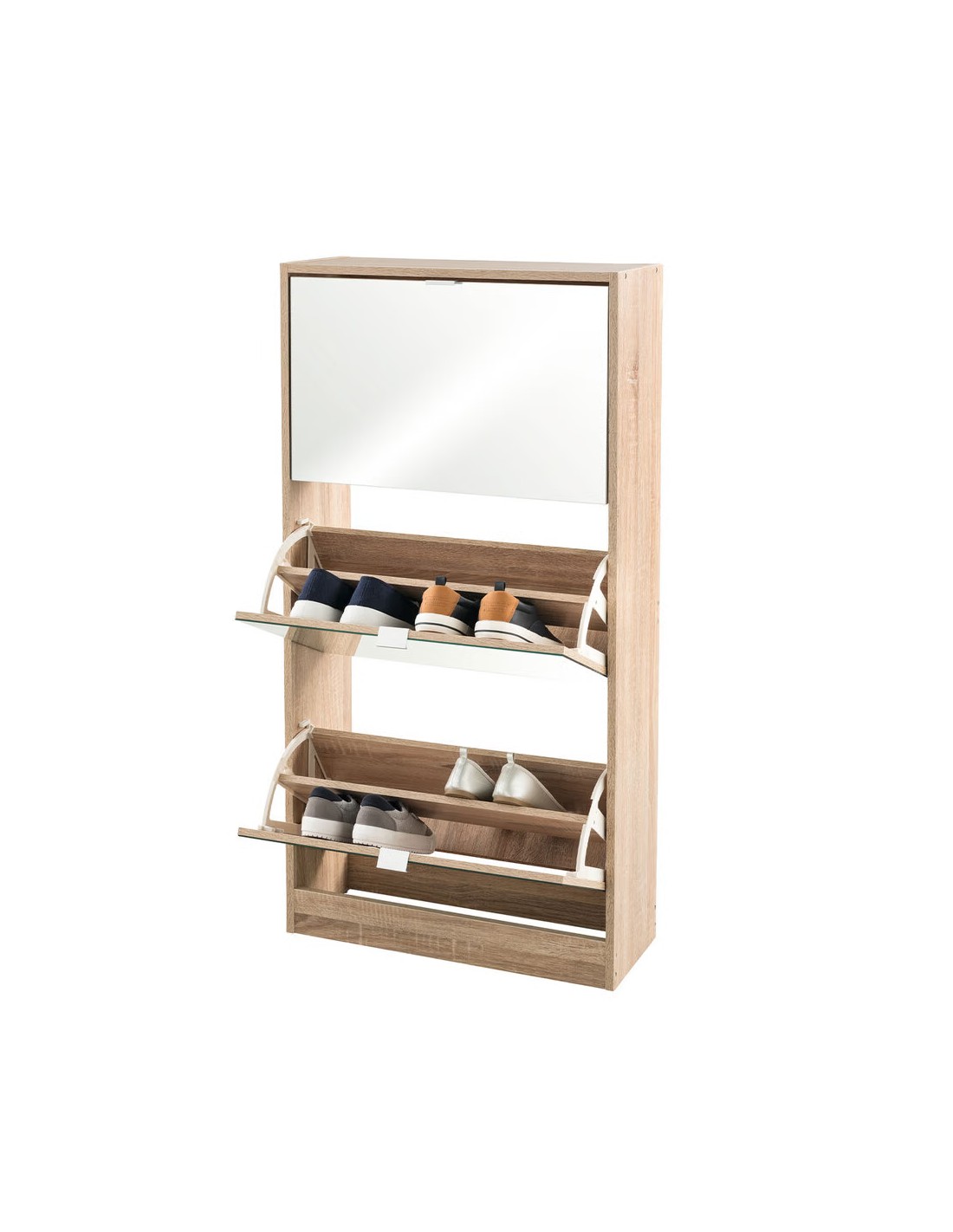 L'organisation de vos chaussures atteint de nouveaux sommets avec cette étagère à chaussures avec miroir. Cette étagère à chaussures est parfaite pour ranger les chaussures dans votre placard, votre entrée ou tout autre petit espace ! Conçu avec une légère inclinaison et un miroir, ce porte-chaussures maximise l'espace de rangement tout en vous permettant de voir chaque paire individuellement. Ce porte-chaussures peut contenir jusqu'à 18 paires de chaussures, donc quelle que soit la taille de vos pieds, soyez assuré que ce porte-chaussures peut s'en charger.