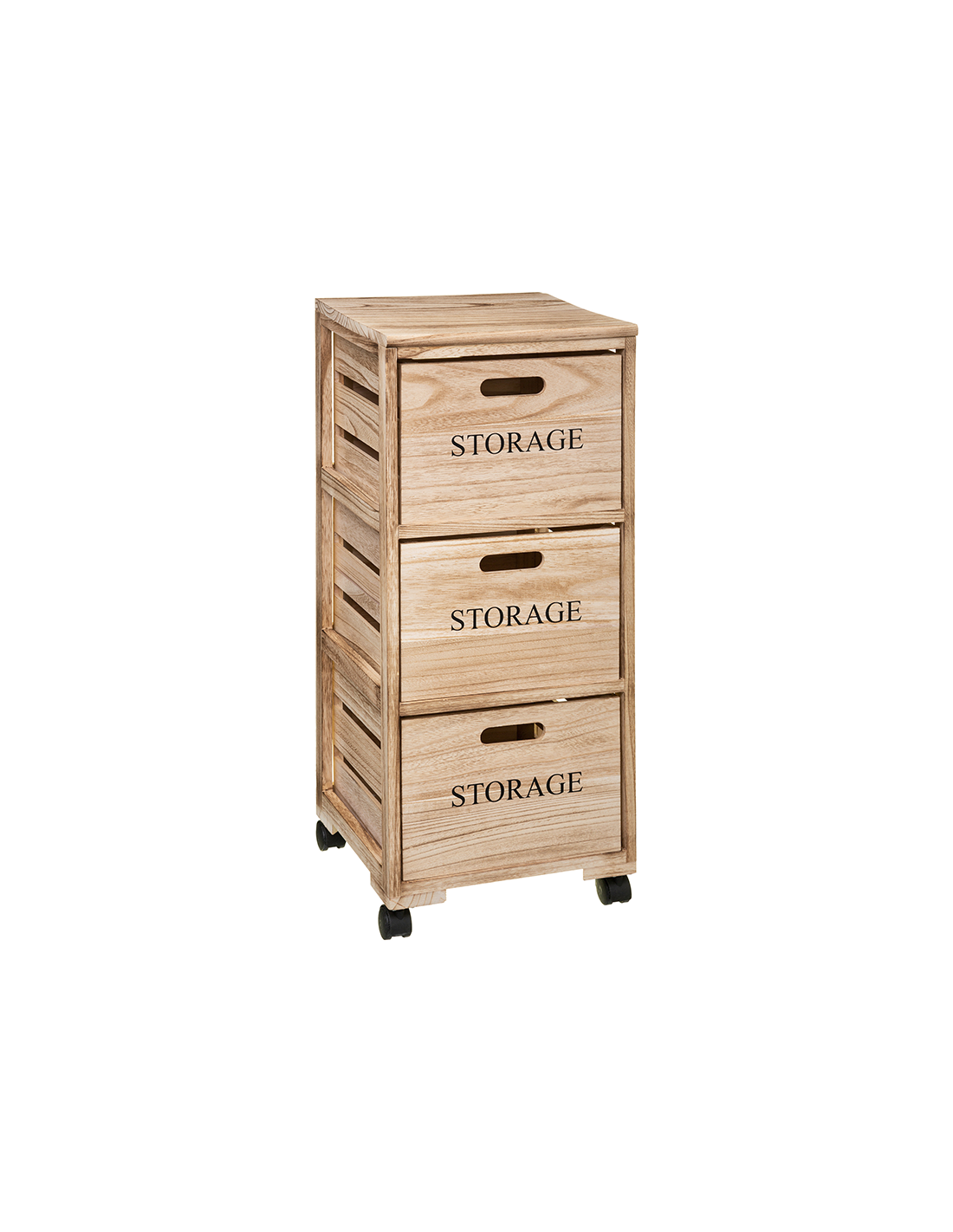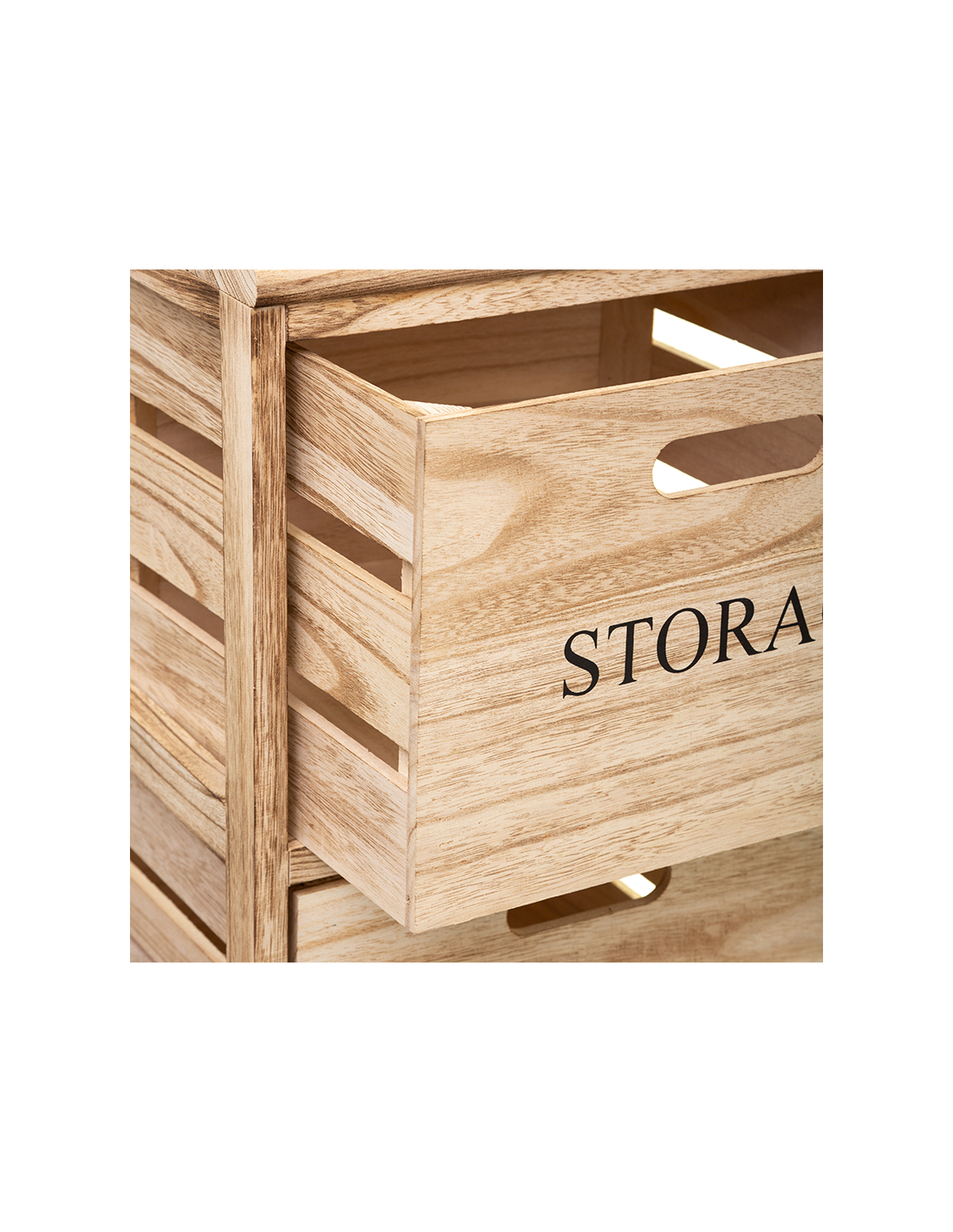 Ce meuble est composé de 3 tiroirs (cagettes) en bois paulownia. Idéal pour le rangement ou en décoration.