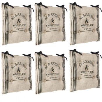 Ce lot de 6 galettes de chaises Bistro apportera un confort incomparable à votre mobilier. Les liens vous permettront de les fixer efficacement sur vos chaises.Habillez donc vos chaises et attachez ce coussin à l'aide de ses 2 lanières qui permettront ainsi à la galette de chaise d'assurer une bonne fixation ! Une petite tâche ou juste besoin d'un rafraichissement - n'hésitez pas et mettez-la en machine ! Ce coussin de chaise carré style Bistrot gris et lin sera parfait pour vous garantir confort et style dans votre salon. Ce lot est composé de 6 galettes de chaises qui s'attachent simplement à tous types de chaises avec les deux liens.