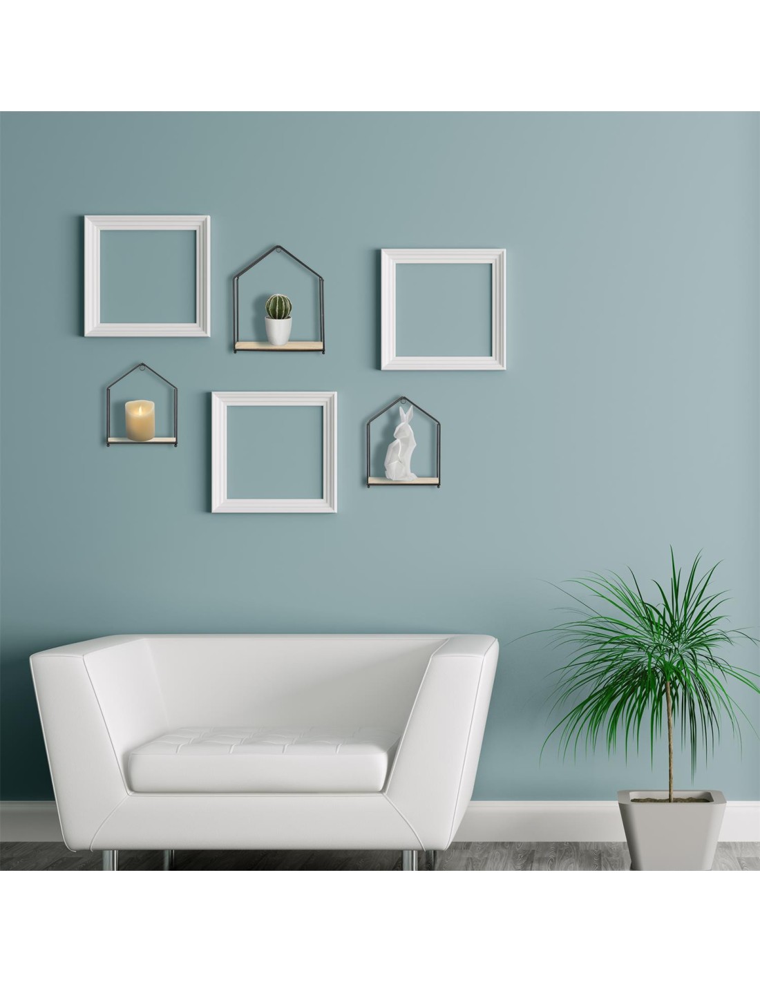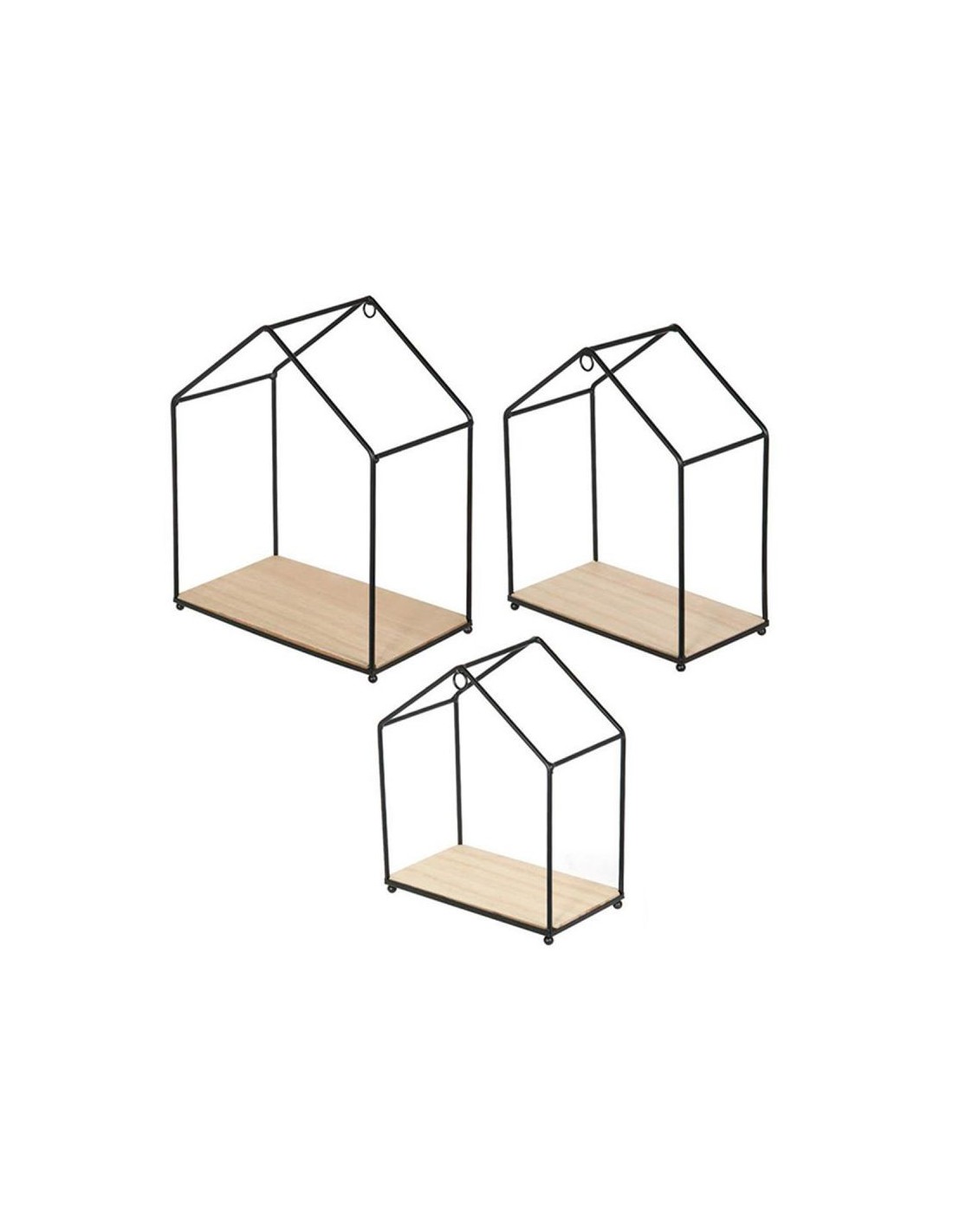 Set De 3 Étagères Forme Maison En Bois Et Métal