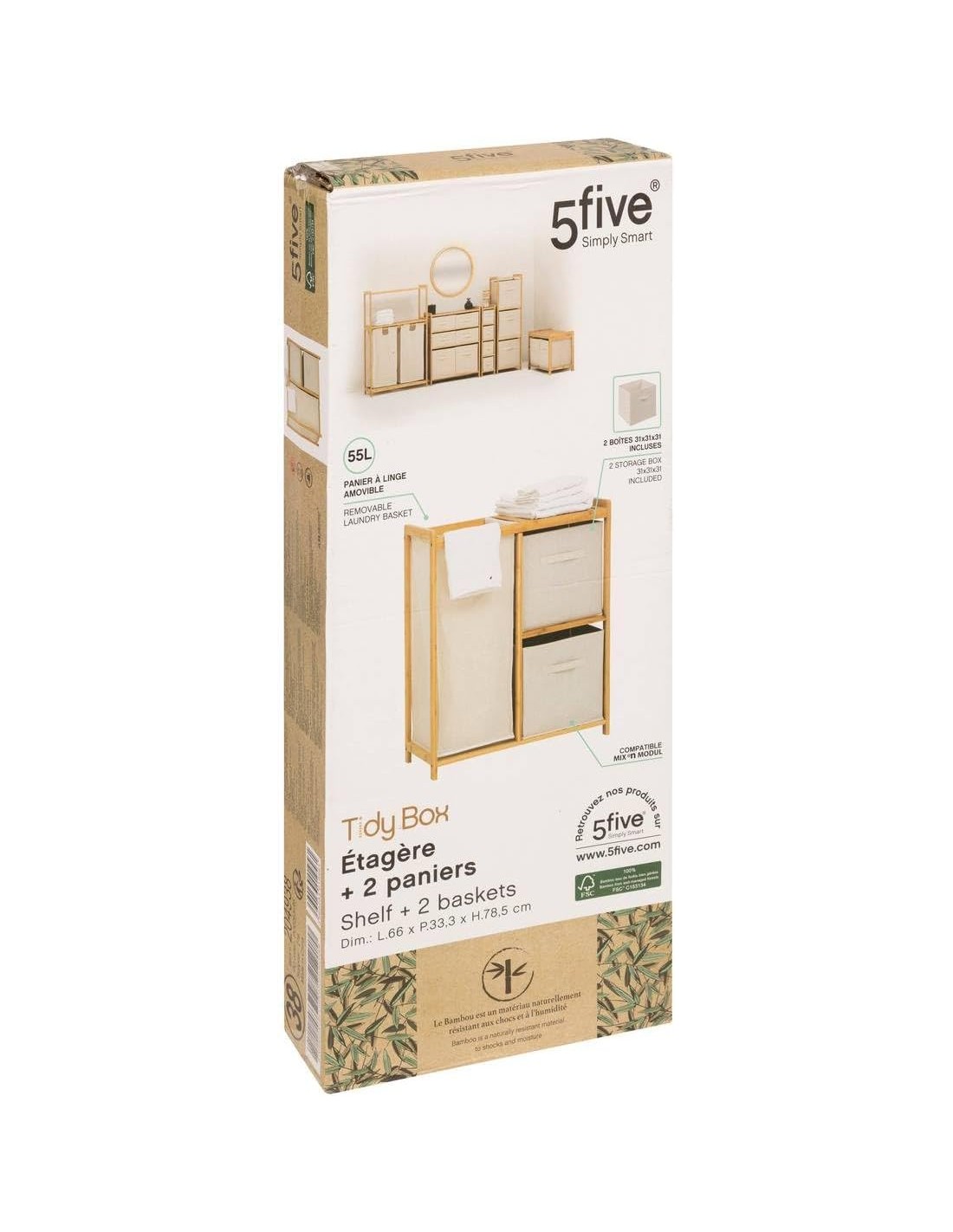 Caractéristiques sur l’Étagère Tidy Box 3 paniers Marron Five :