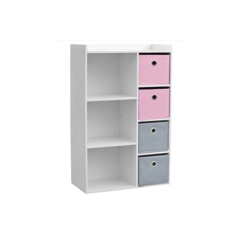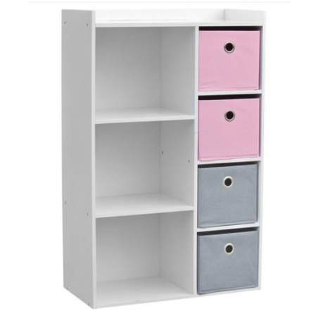 Caractéristiques pour Meuble de rangement pour fille 3 niches + 4 tiroirs Rose et Gris: