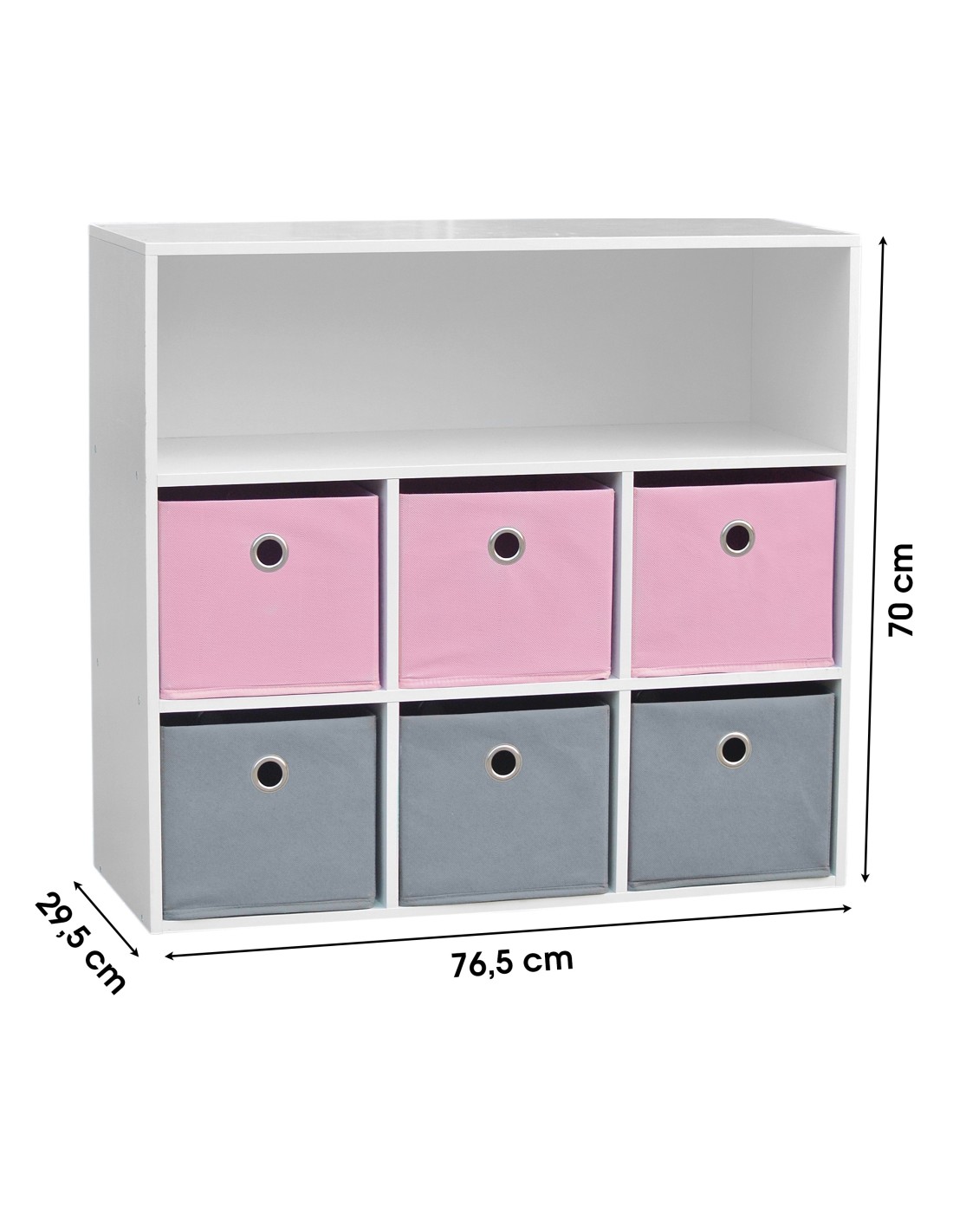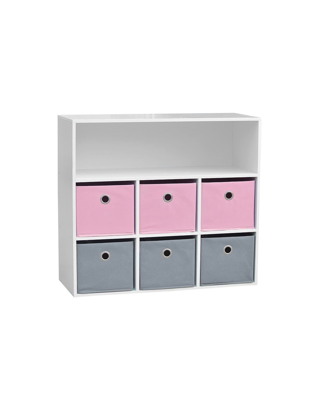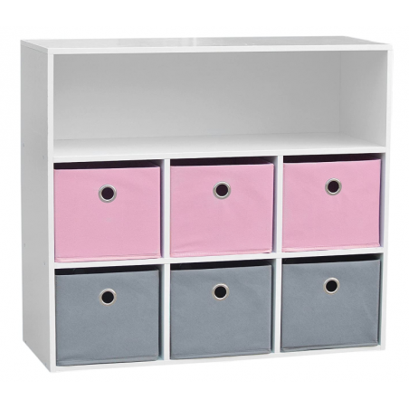 Caractéristiques pour Meuble de rangement pour fille 6 paniers + 1 niche Rose et Gris: