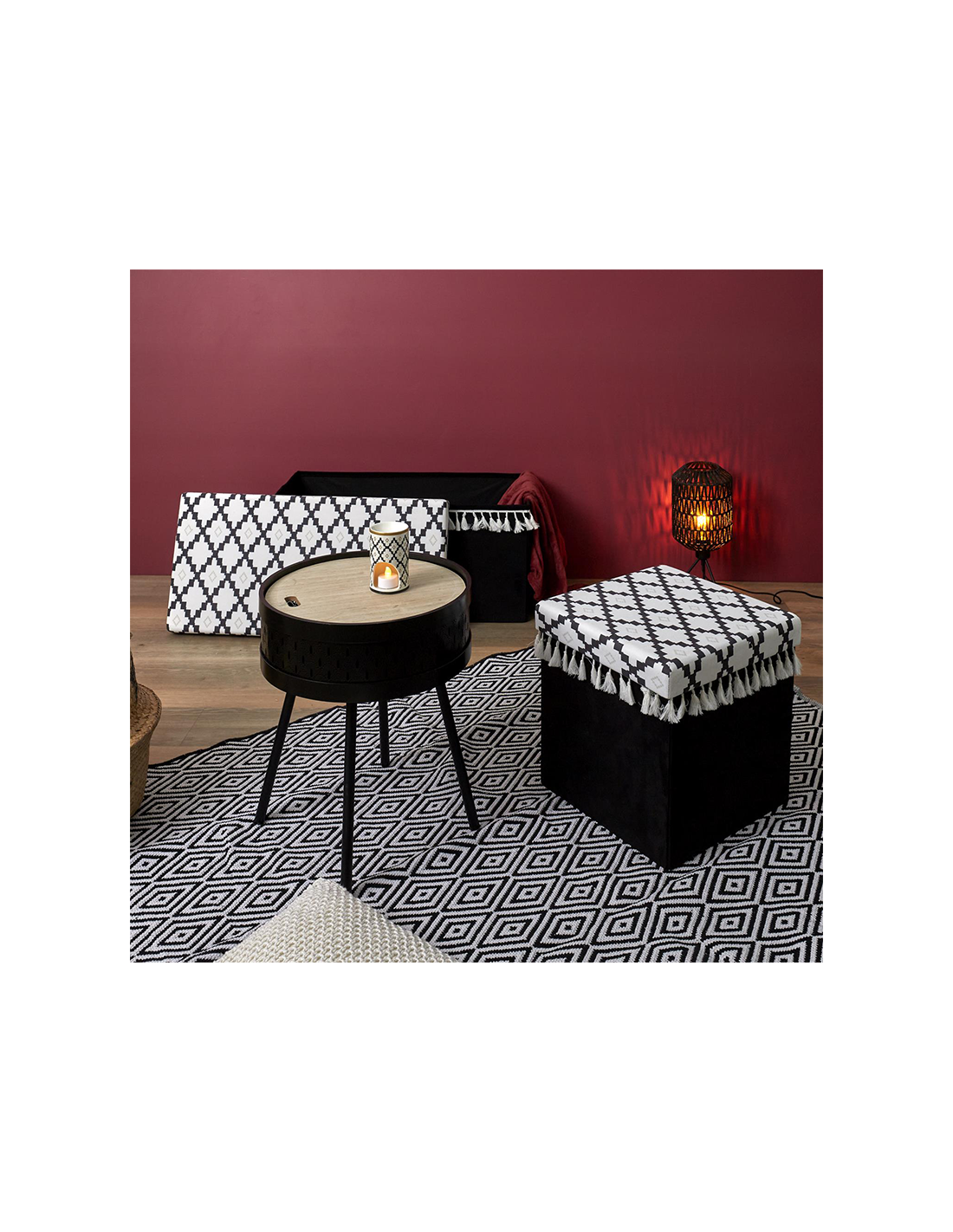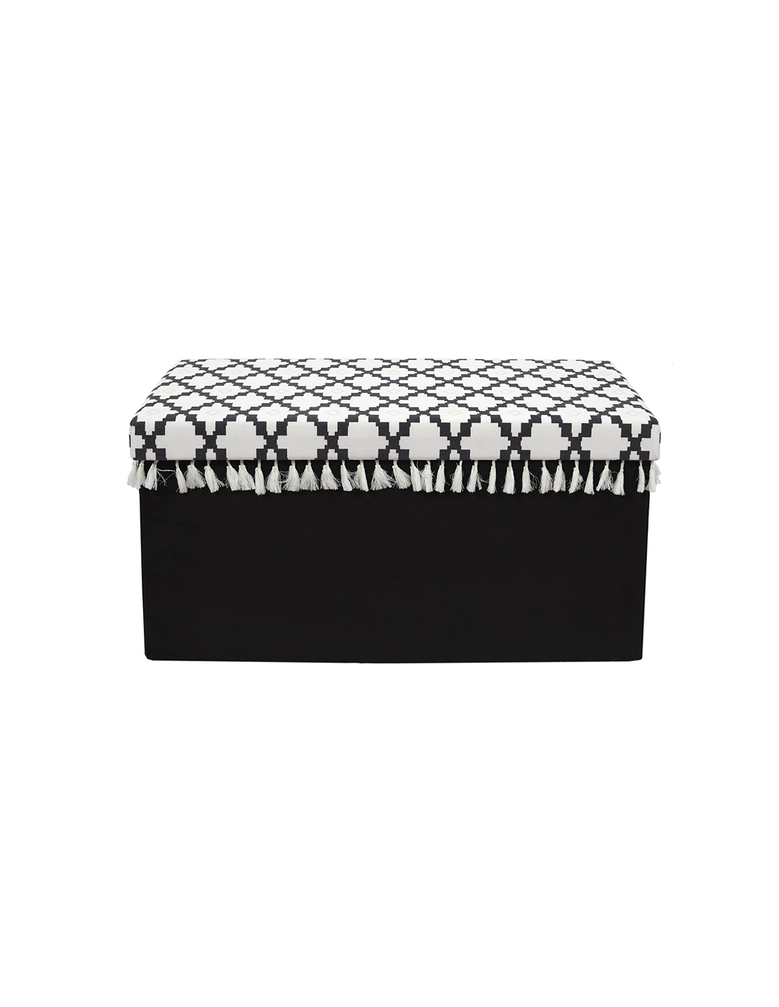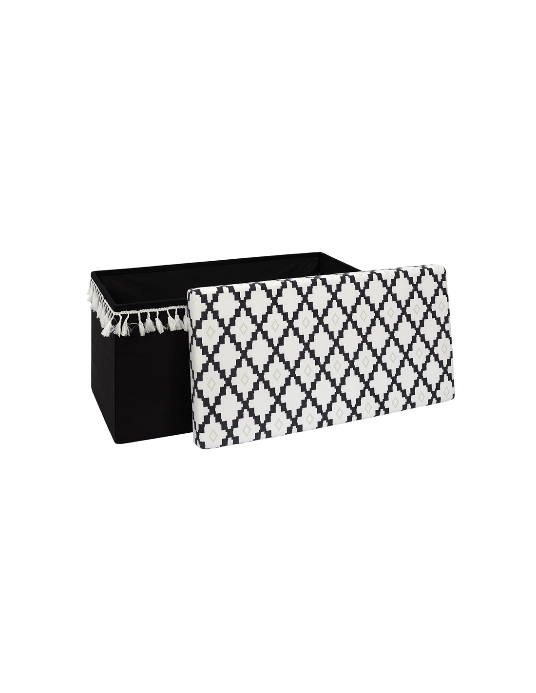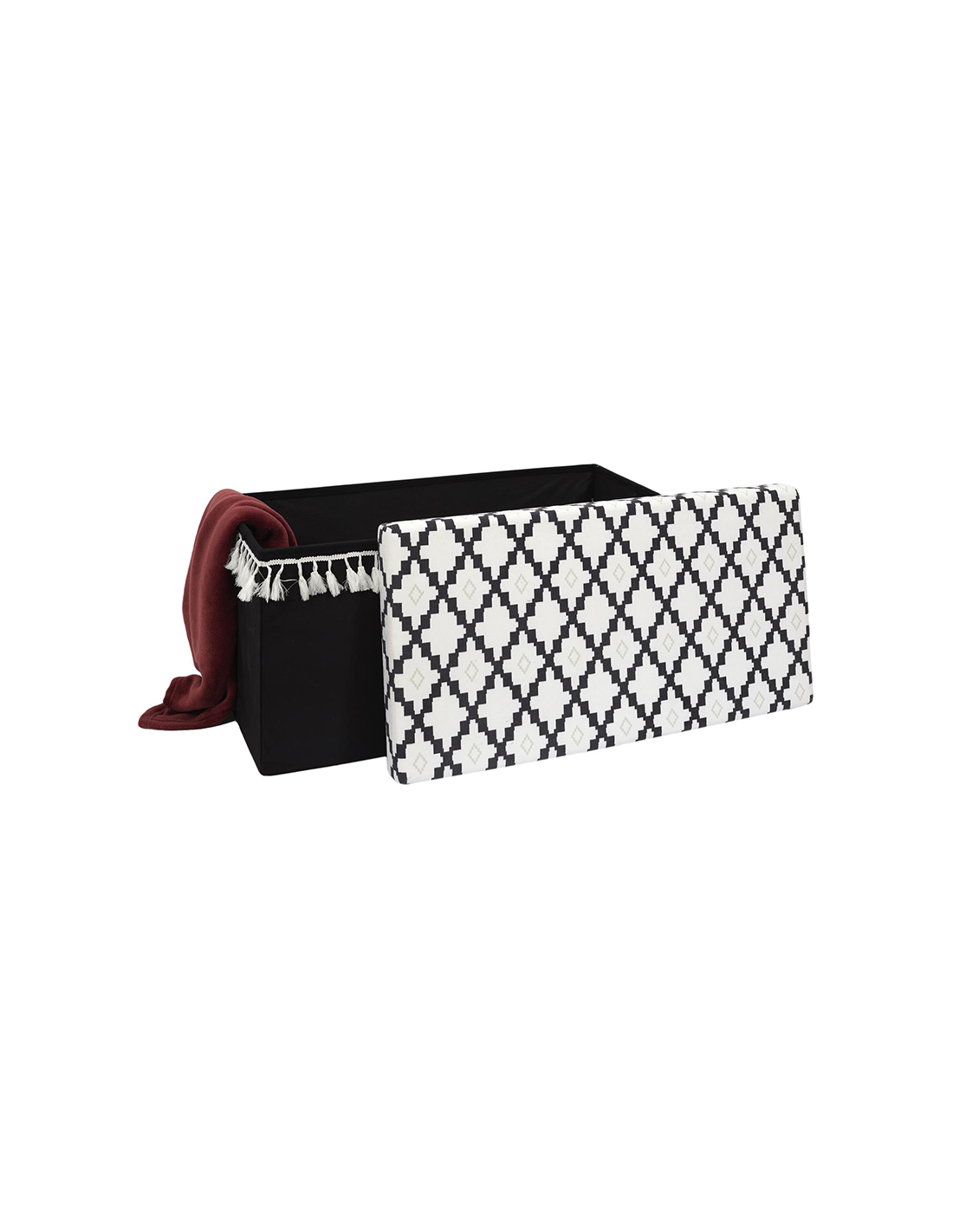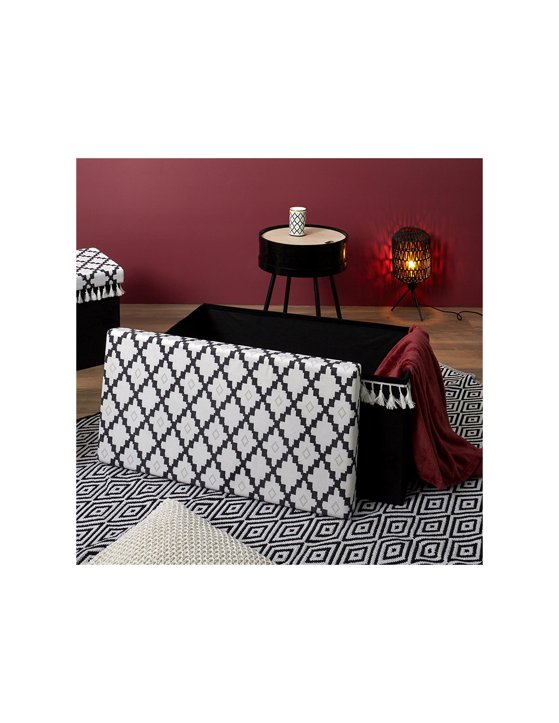 Ce banc coffre de rangement est très pratique dans une entrée ou même au pied du lit pour une chambre moderne. Il présente un joli motif fleuri noir tendance.