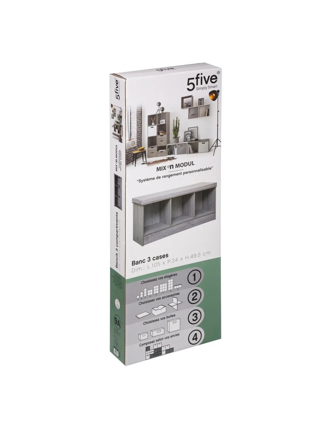 Caractéristiques sur le Banc De Rangement 3 Cases Mix Gris Five :