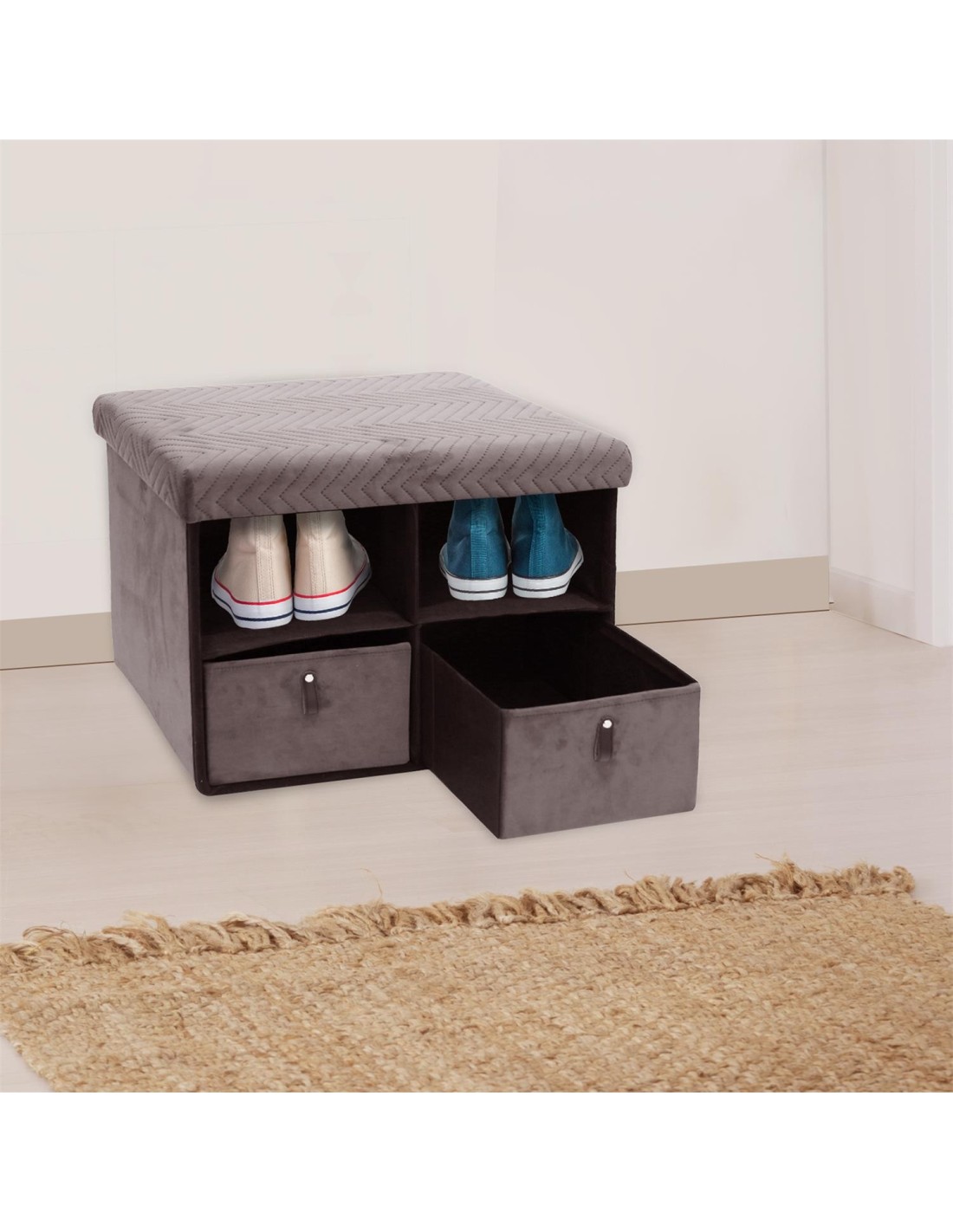 Banc pliable revêtement en velours avec 2 tiroirs.